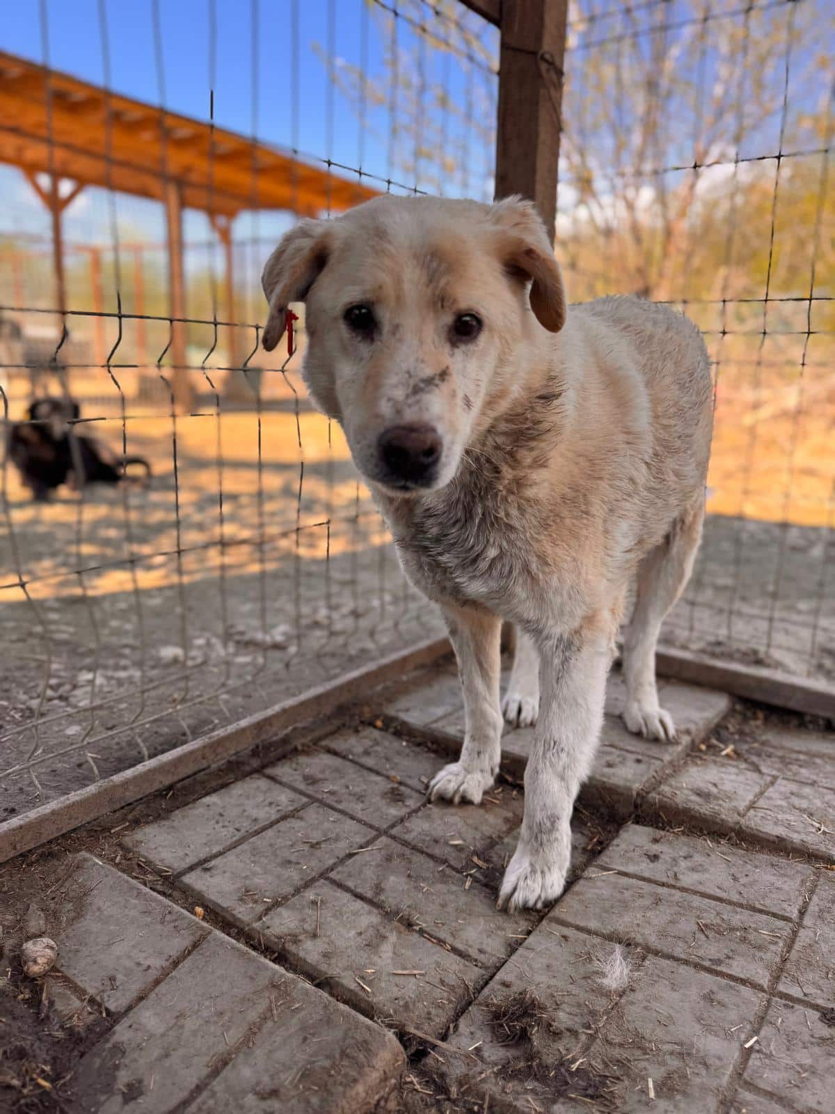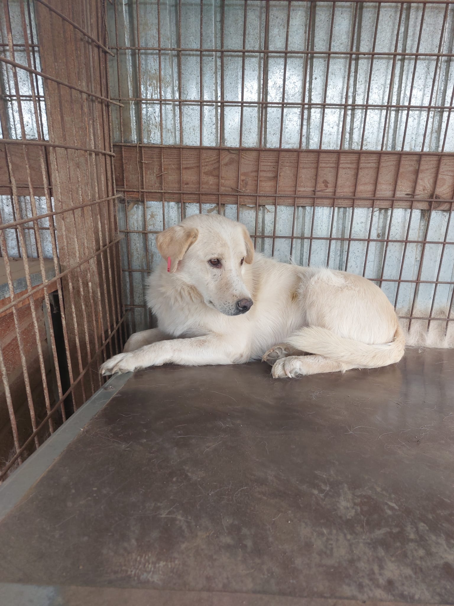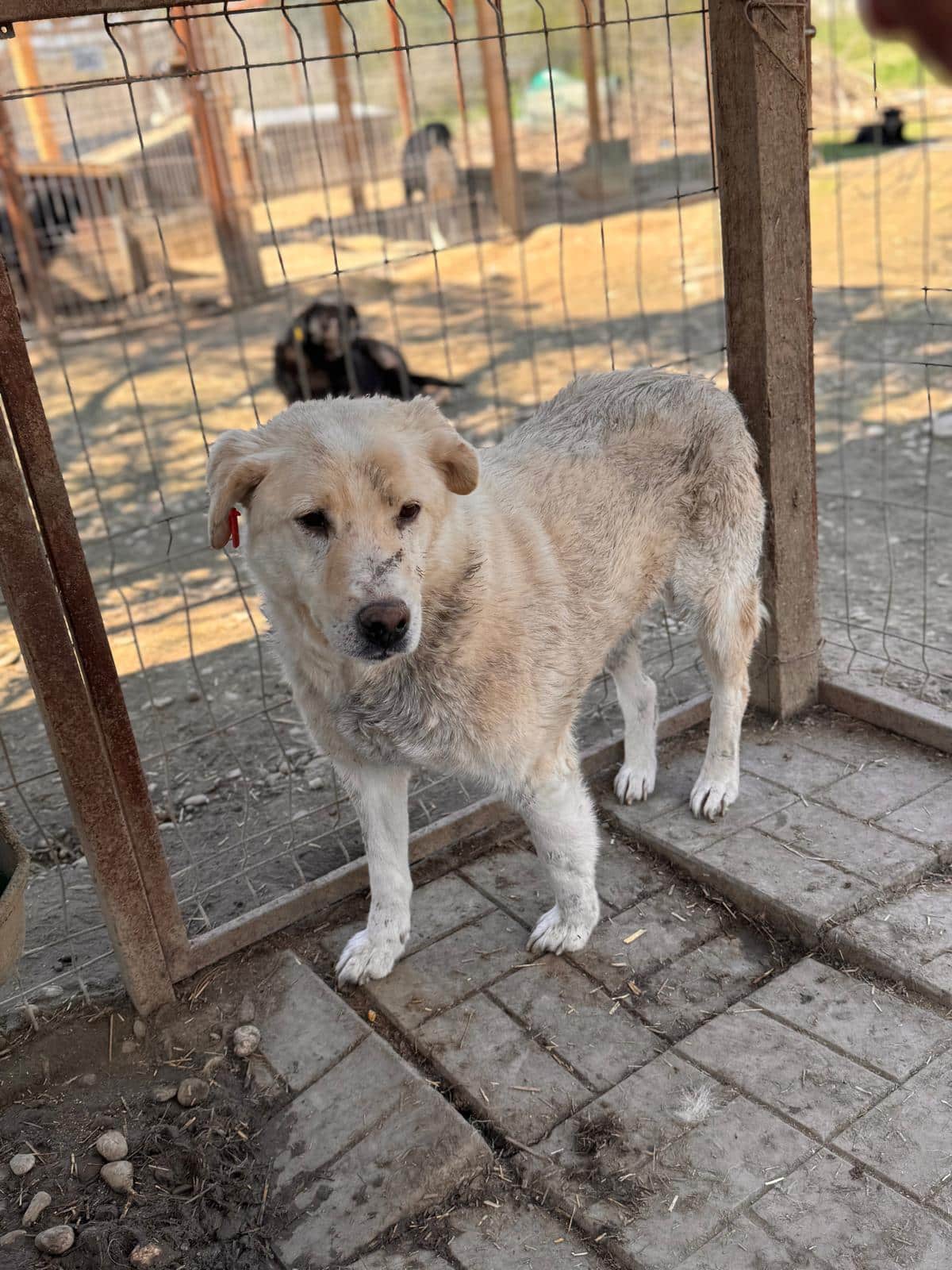 CAMELLO machte bei unserem Besuch einen abgekämpften und traurigen Eindruck auf uns. Er lag zunächst nur in der Hütte und nahm dort unsere Leckerlies, wenn wir sie ihm hingelegt haben. Er ist uns Menschen gegenüber weiterhin unsicher und wir konnten ihn leider nicht anfassen. Sein Fell ist total verschmutzt und er wirkt müde und resigniert. CAMELLO belastet beim Laufen sein rechtes Hinterbein nicht richtig, aber hat es noch geschafft, auf eine Hütte zu springen.