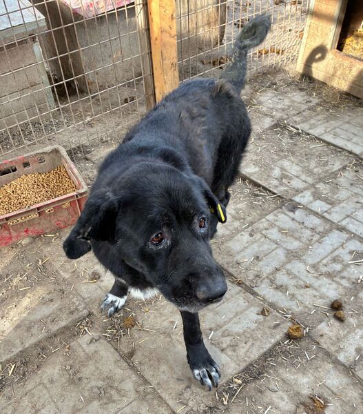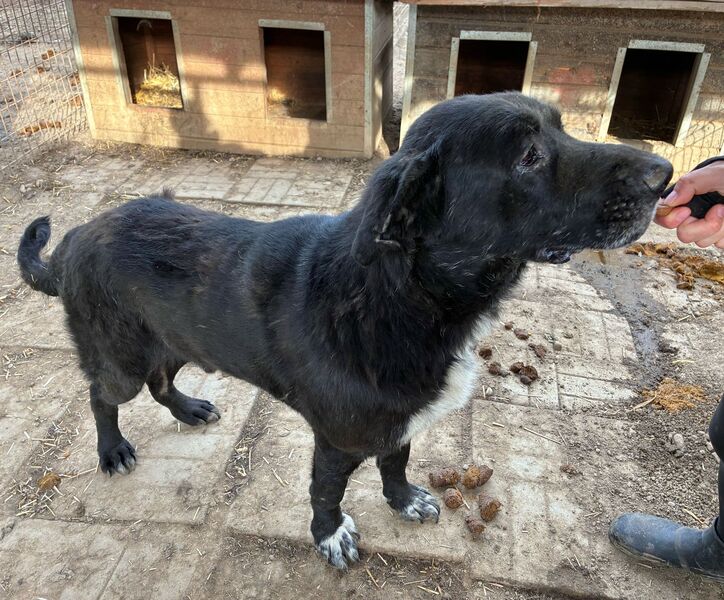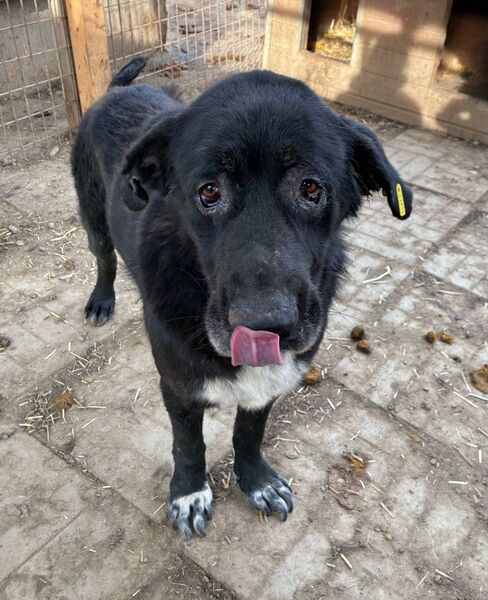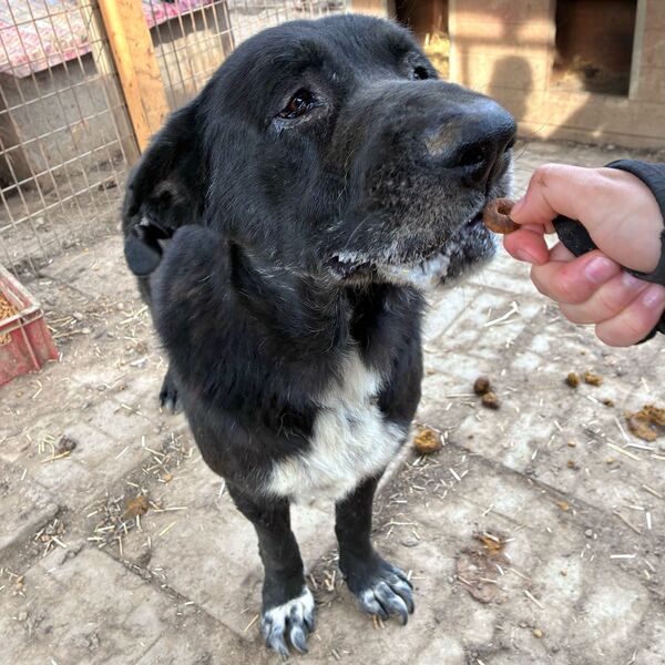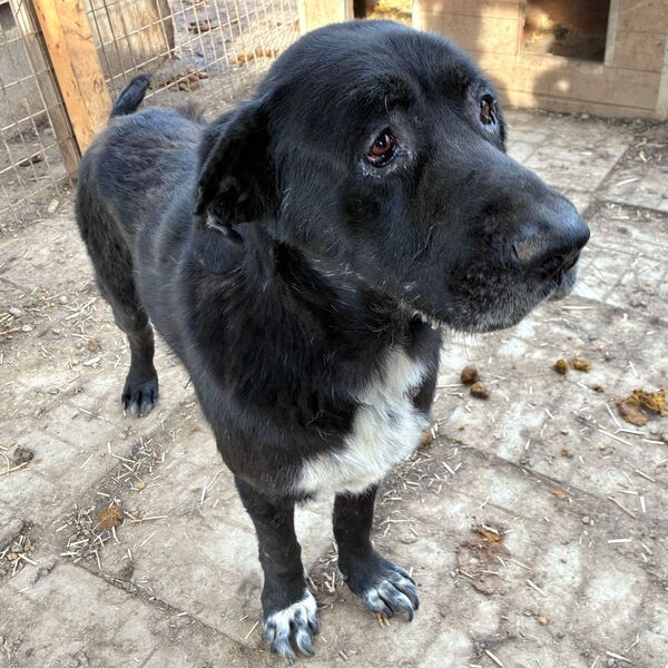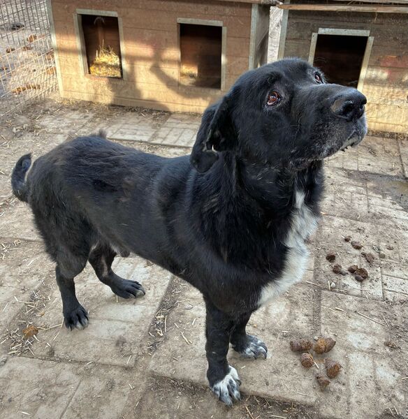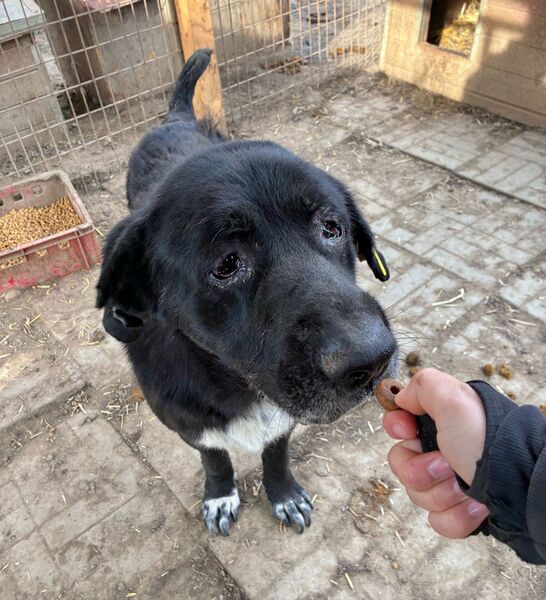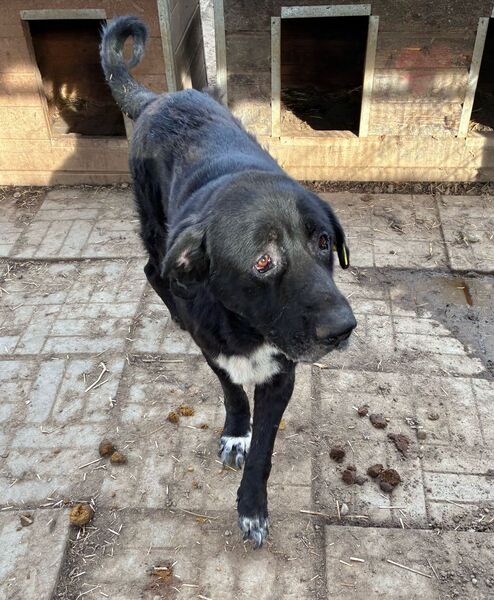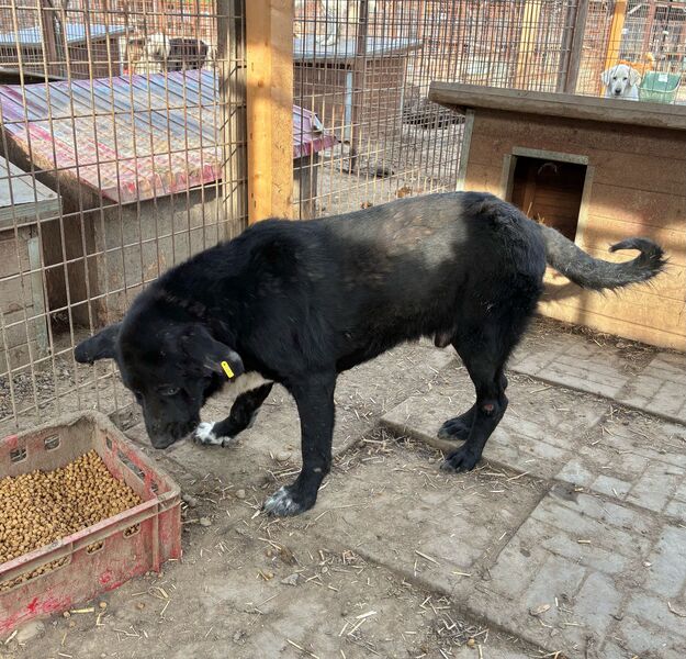 Dieser gemütliche Rüde lag gerade entspannt in der Hütte, als wir seinen Kennel betraten. Diesen teilt er mit einem weiteren großen Rüden und beide zeigten sich während unseres Aufenthalts verträglich miteinander. Neugierig stand CANDO auf, um uns aus der Nähe beschnuppern zu können. Sehr gern aber etwas unsanft nahm er unsere mitgebrachten Leckerlie aus der Hand, was vermutlich daran liegt, dass es im Shelter nur sehr selten solch köstliche Leckereien gibt… Beim Füttern konnten wir ihn ab und zu vorsichtig an der Schnute berühren. CANDO schien kein besonders großes Interesse an intensiverem Körperkontakt zu haben und wir bedrängten ihn auch nicht. Wir hoffen sehr, dass CANDO einen liebevollen Platz bei erfahrenen Menschen finden kann, die ihn in seinem Tempo ankommen und auftauen lassen.