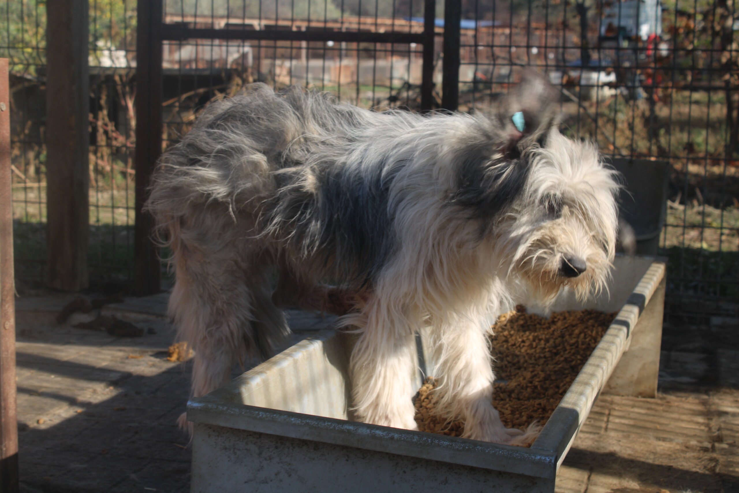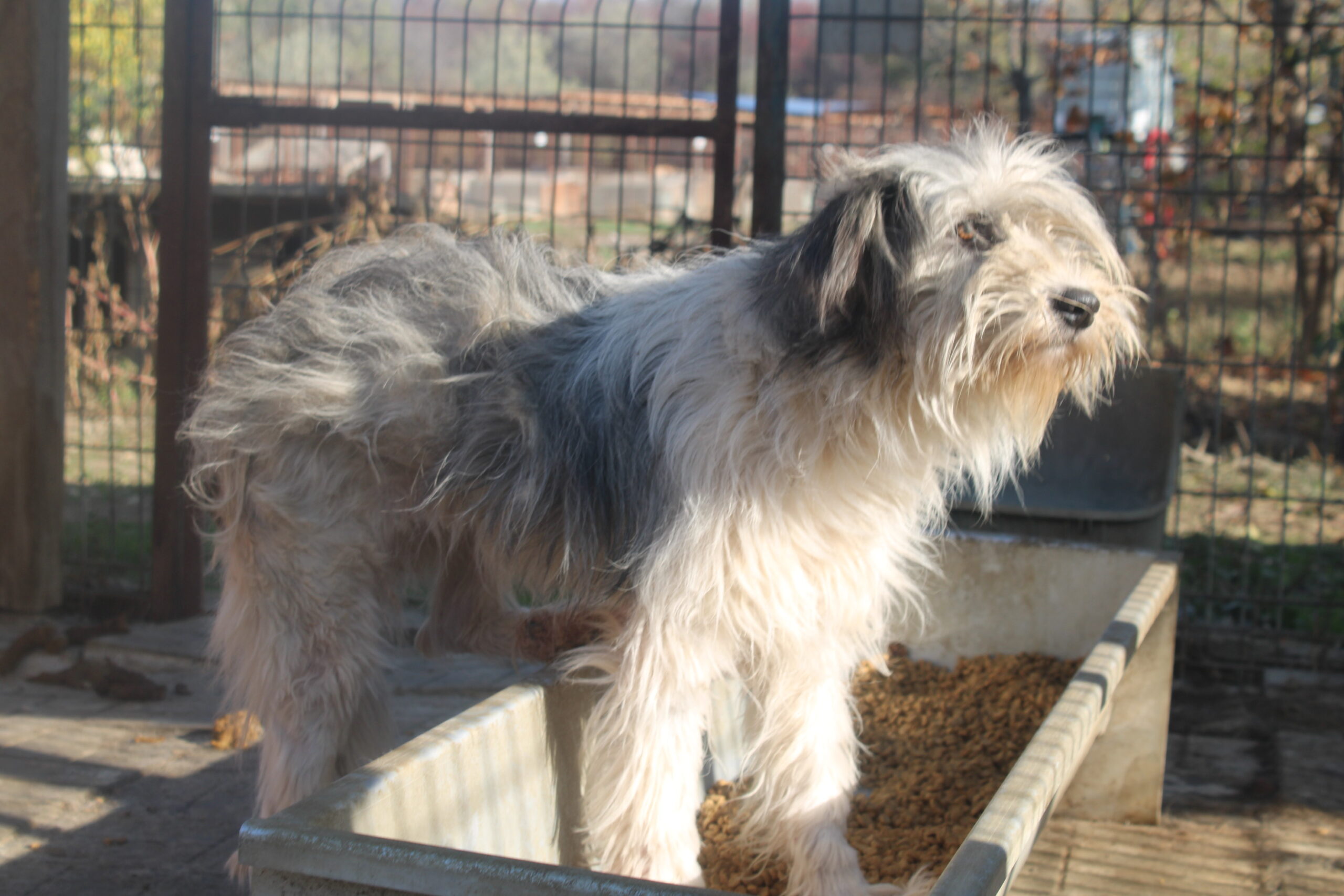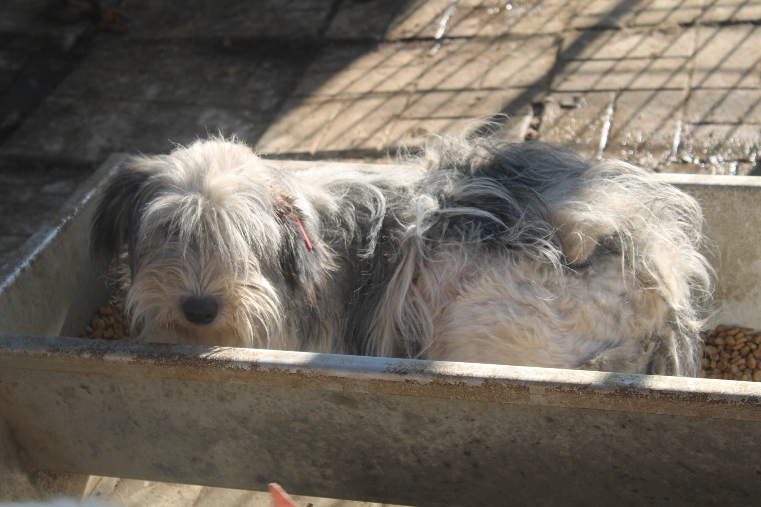 Hündin geb. ca. 2018 Größe: ca. 45cm stark verfilzt, leichte Hautprobleme, Ohr verletzt (Stand 11/2021)