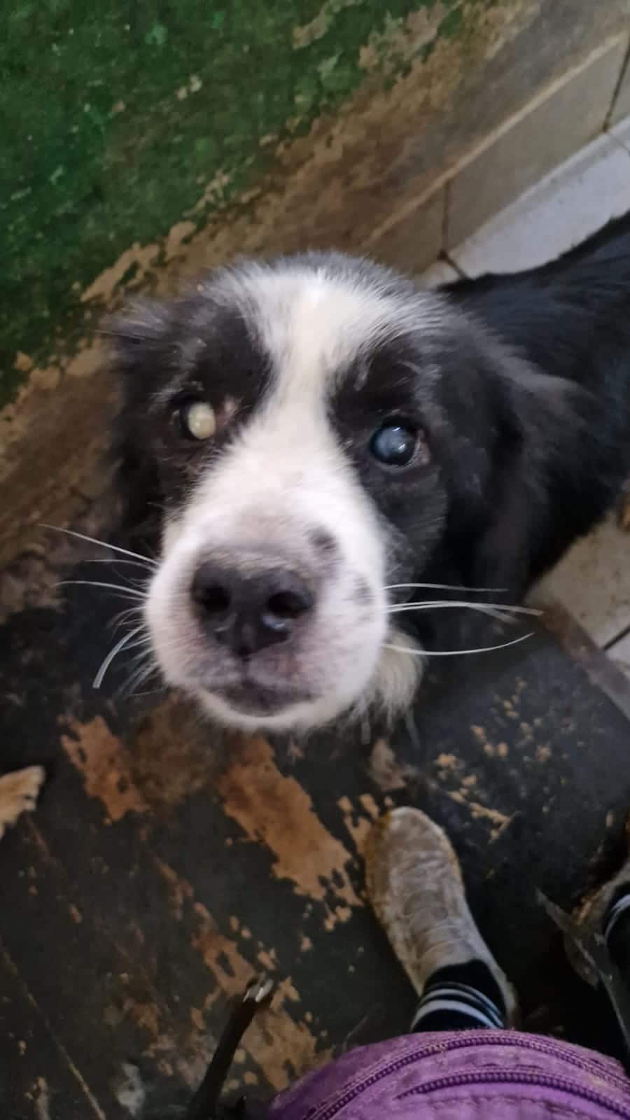 zur Besonderheit: | rechtes Auge komplett eingetrübt, links beginnend; schwache Hinterhand, viel zu dünn (05/24), schlimme Hautprobleme (07/24) |