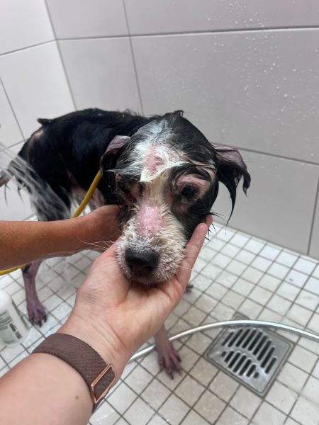 Aktuell hat er große Hautprobleme, ist völlig verfilzt und scheint auch zu lahmen
