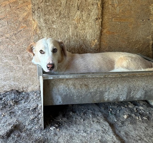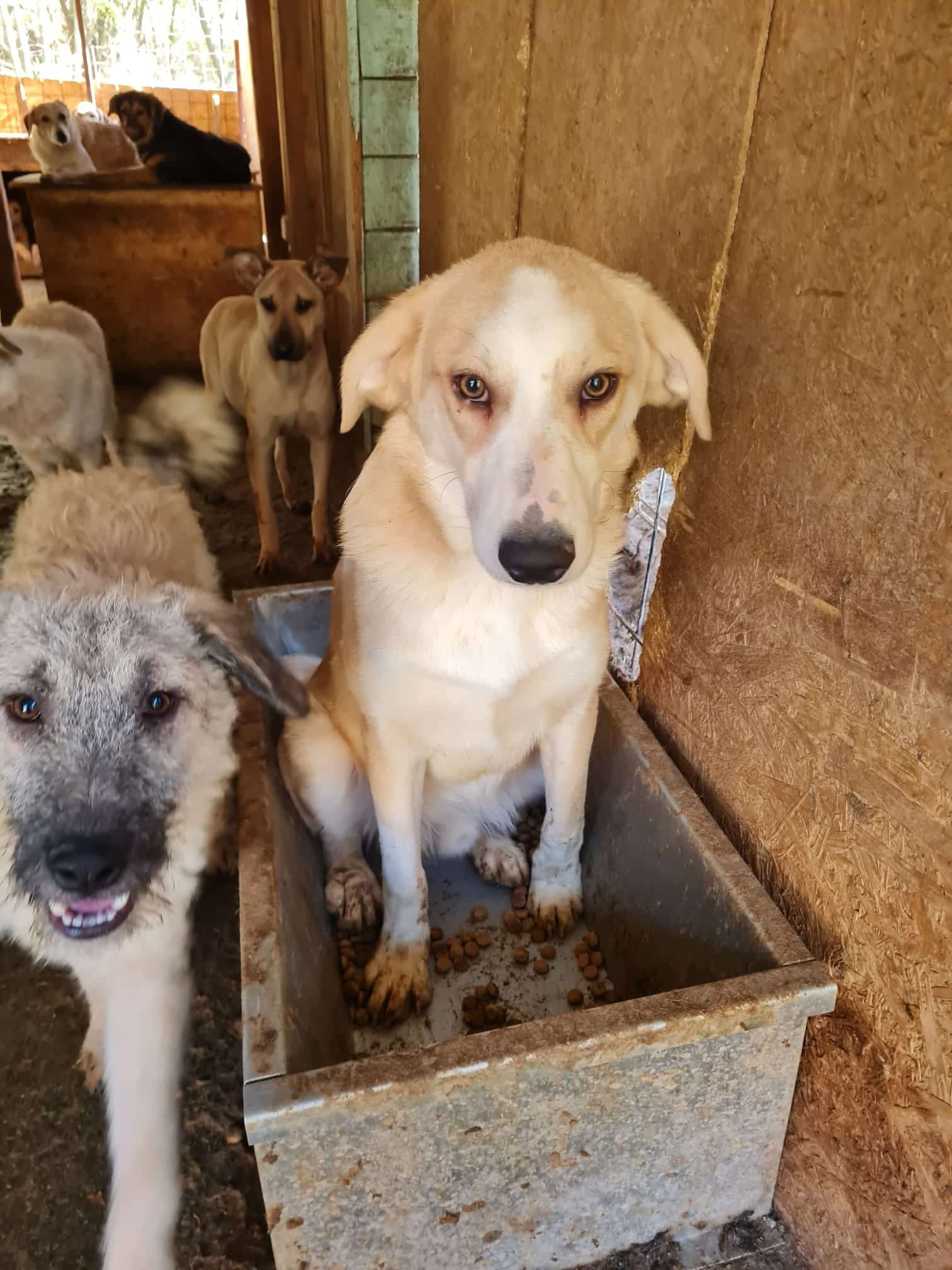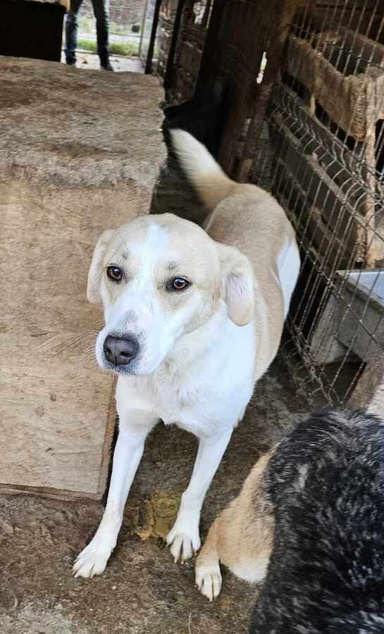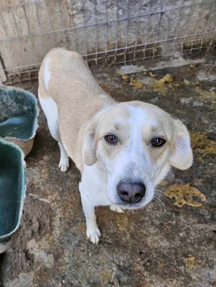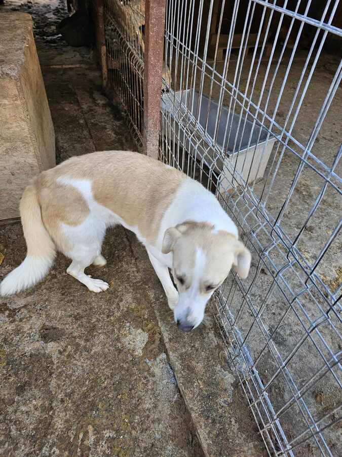 Update 04/24: Cappuccino ist seit 1,5 Jahren im Shelter und ist leider hier groß geworden. Er zeigt sich weiterhin verträglich und ist ein freundlicher Rüde. Er ist zwar unsicher aber anfassbar. Selbst als über der Hütte etwas polterte, lief er nicht gleich panisch davon, er bleibt defensiv und bleibt und liess sich weiter anfassen. Natürlich wird er erfahrene Menschen brauchen, die ihm zeigen, dass die Welt schön ist und noch mehr zu bieten hat, als wenige qm und kalten, dreckigen Beton mit Gitterstäben.
