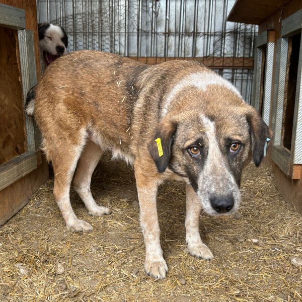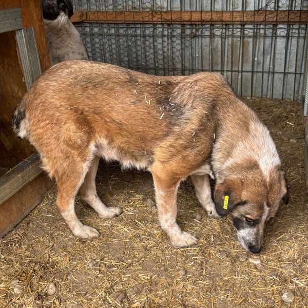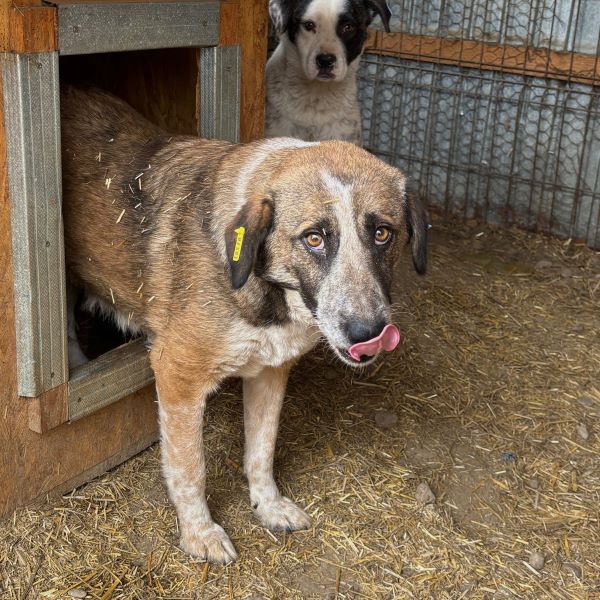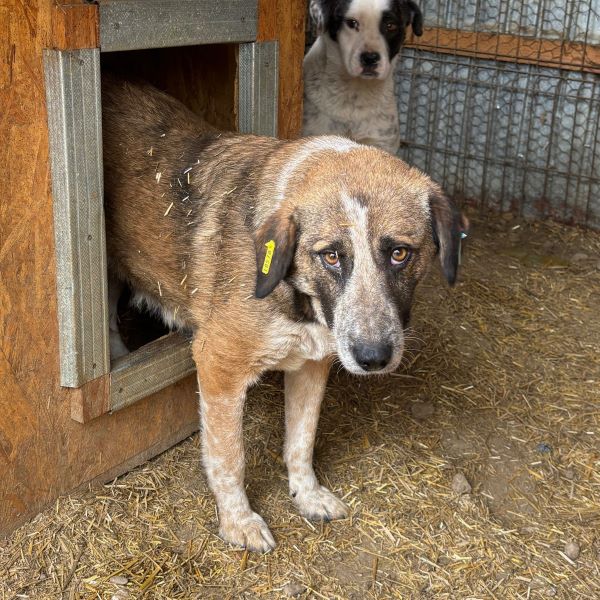 Diese hübsche Hündin mit dem besorgten Blick hielt sich während unseres Besuchs zunächst in der Hütte auf und schien entspannt zu dösen, als wir den Kennel betraten. Als wir Leckerlie vor die Hütte warfen, kam CARDEA direkt heraus, um diese erst vom Boden und dann direkt aus unseren Händen zu nehmen. Zaghaft freute sie sich über diese Aufmerksamkeit, doch wirklich streicheln lassen war ihr noch zu gruselig. Diese intensive Nähe wird vermutlich neu und daher noch etwas ungewohnt für sie sein.