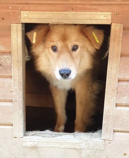 CAREX lebt seit 2 Jahren in einer Hütte in Bucov. Immer wenn wir vor Ort sind, liegt er da drin. Er war zwar neugierig, was wir in seinem Kennel machen, und nimmt auch Futter aus der Hand, aber ansonsten hat sich nichts an seiner Beschreibung in den letzten Jahren geändert. Er wollte weder seine Hütte verlassen, noch konnten wir ihn streicheln.