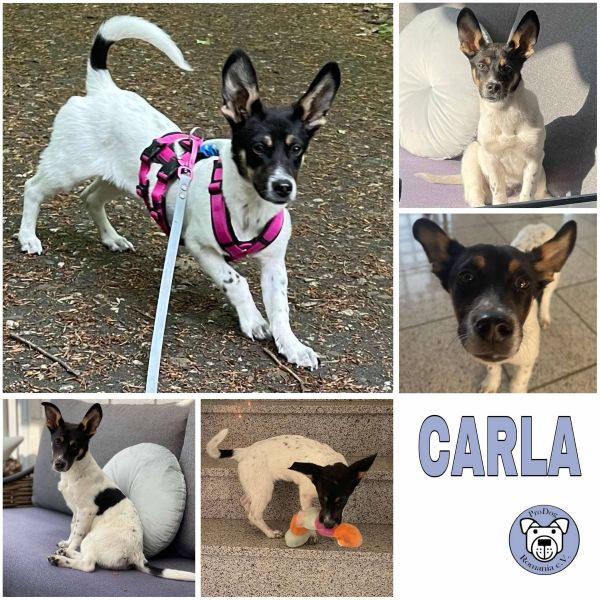 Carla ist ein ganz liebes junges Hundemädchen, das sich hier sofort integriert hat. Sie lebt hier problemlos mit einer anderen Hündin zusammen und ist sehr verträglich mit Artgenossen. Sie möchte diese aber mit Ruhe kennen lernen und nicht überrannt werden. Carla ist eine zarte, kleine Hündin, die Ärger aus dem Weg geht. Sie geht mittlerweile auch gerne spazieren und läuft schon gut an der Leine. Sie fährt im Auto mit und ist mit Umweltreizen sehr entspannt.
