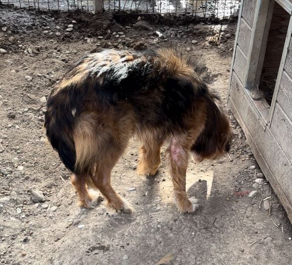 zur Besonderheit: | mittellange Rute, Linkes Vorderbein wirkt etwas durchtrittig / verdreht, Fehlendes Fell und heilende Wunde am rechten Ellenbogen (03/24) |