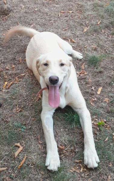 Vom ersten Tag an zeigt Carmine sich sehr aufgeschlossen und umgänglich. Sie ist ein ganz normaler Junghund mit junghundetypischem Verhalten. Neugierig, verspielt, sehr verträglich und labradormäßig verfressen.