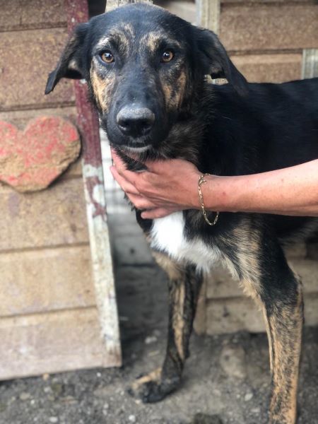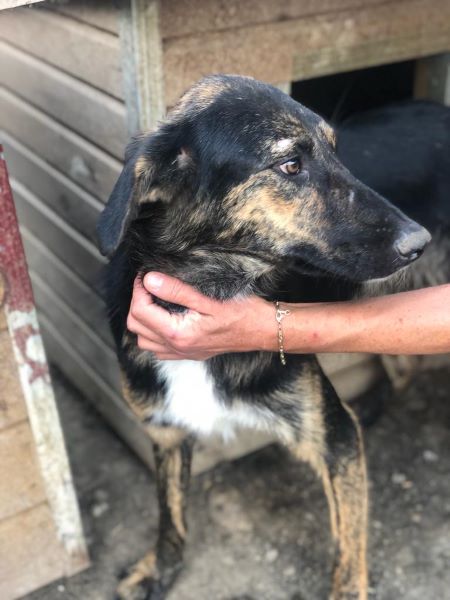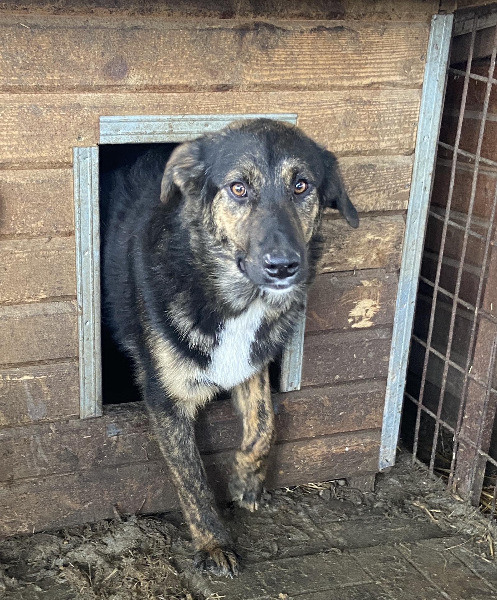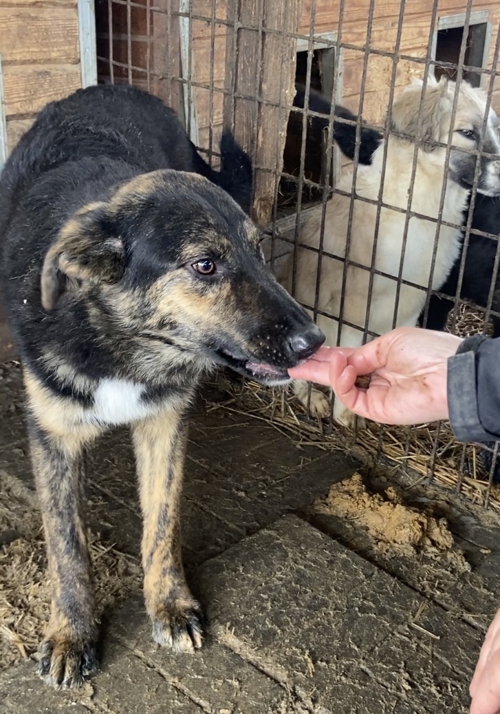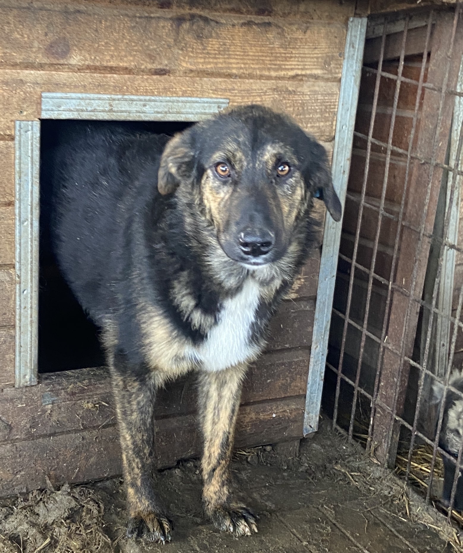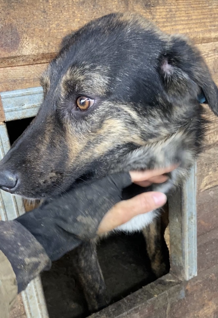 Als wir den Kennel betraten, war CAROL erstmal recht zurückhaltend. Sie scheint den positiven Kontakt zum Menschen einfach nicht zu kennen und sucht deshalb mehrfach Schutz in der Hütte um in Sicherheit beobachten zu können. Sie nahm mutig Leckerchen aus der Hand und war dabei an der Schnauze anfassbar. Unter Bedrängung in der Hütte konnten wir sie richtig kraulen und ihr zeigen, dass Streicheln nicht schlimm ist. Sie konnte es zwar noch nicht voll genießen, hat es aber ohne übermäßig angespannt zu sein mit sich machen lassen. CAROL sollte schnell Anschluss an den Menschen bekommen und wird dann sicher auch ganz auftauen können. In ihrem Kennel zeigte sie sich sehr verträglich mit Rüden und Hündinnen, sie beobachtete uns auch sehr interessiert, während wir uns mit den anderen Hunden beschäftigten. Ein souveräner Ersthund würde ihr das Ankommen und Einleben im neuen Zuhause sicher erleichtern.