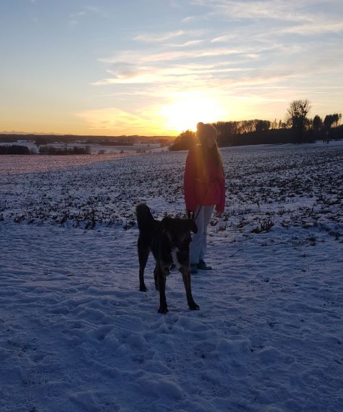 Carol ist nun seit Anfang Dezember 2023 in Deutschland und hat schon so viel gelernt! Sie kann Treppen steigen, ist stubenrein, erkundet neugierig Haus und Garten und geht sehr gerne Gassi – auch längere Runden bereiten ihr große Freude. Sie läuft schon ordentlich an der Leine und hat bereits ohne irgendwelche Probleme an einem Social Walk teilgenommen. Carol ist junghundetypisch verspielt und liebt es, wenn man sich mit ihr beschäftigt.