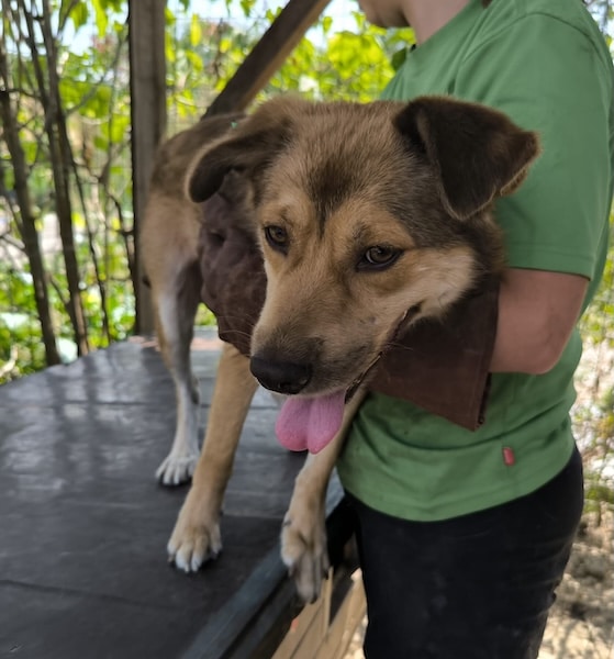 Dieser Rüde begrüßte uns direkt freundlich am Kenneltor. Er ist ein kleines aufgewecktes Kerlchen, dass gut aufgelegt war.