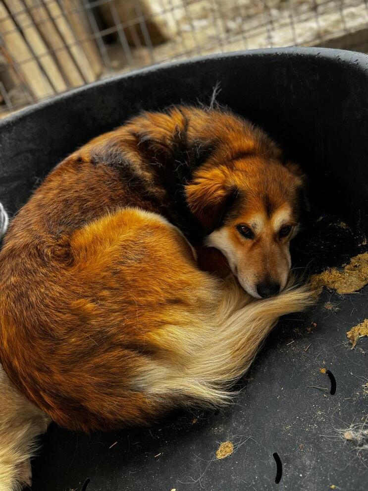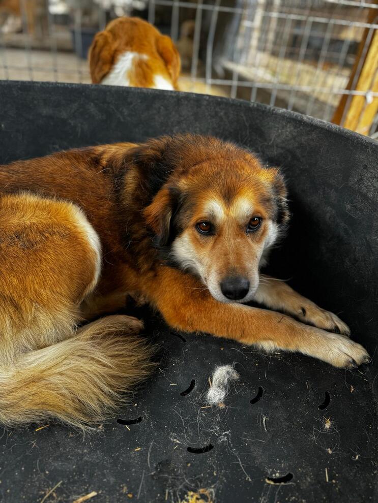 Der wunderschöne, freundliche Rüde Casimiro wird in seinem Kennel von dominanten Rüden nicht ans Futter gelassen. Sein Raum wurde auf die kleine Wanne beschränkt. Wir suchen schnell eine Lösung für ihn.