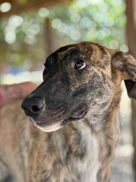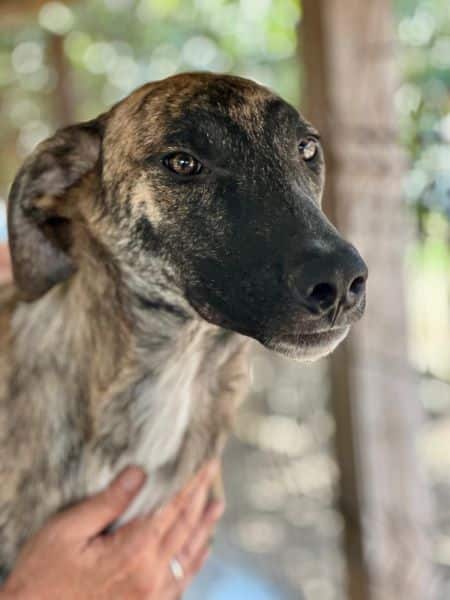 Casino hat sich super entwickelt. Nach wie vor zutraulich, lässt sich gerne streicheln und trotz der ungewohnten Situation, dass er auf ein Hundehüttendach gehoben wurde, ging seine Rute bei unseren Streicheleinheiten. Er würde super schnell in einem Zuhause auftauen. Entsprechend seiner Mutter ist er auch sportlicher gebaut. Wunderschöner, sehr gut sozialisierter Jungrüde.