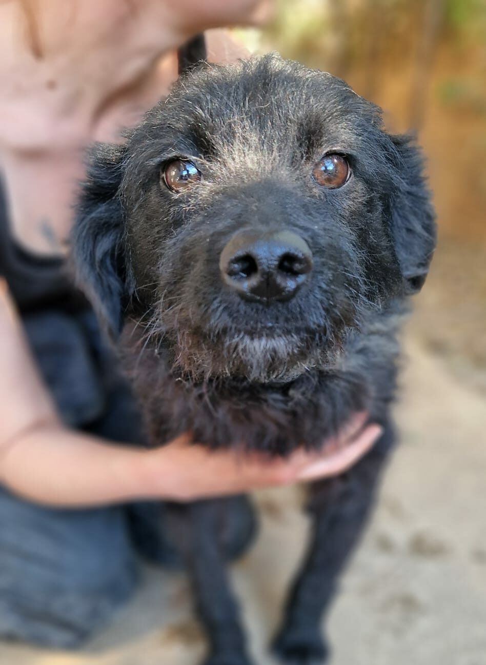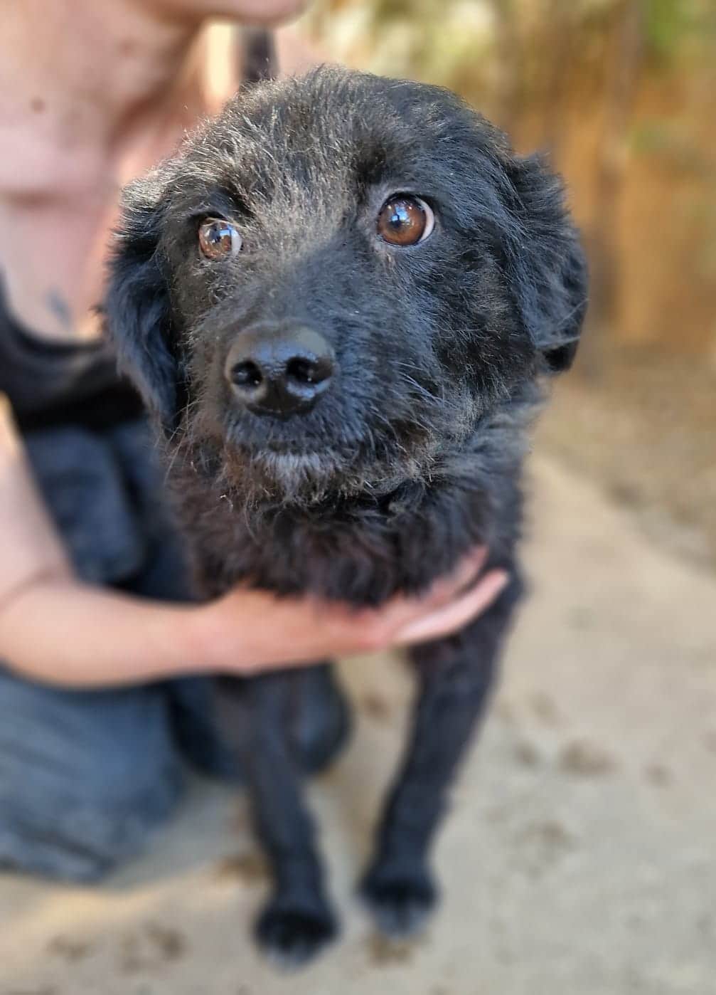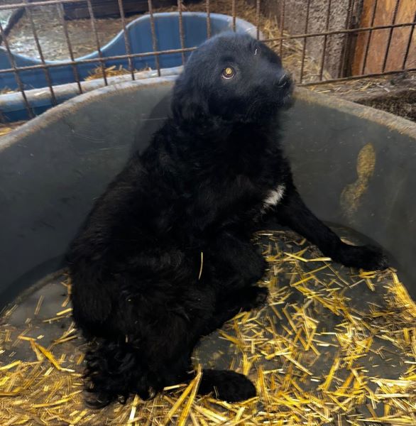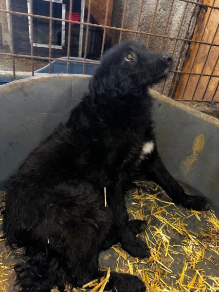 Aktuell muss wegen Platzmangel diese super süße, schwarze Flocke ihr Dasein bei künstlichem Dämmerlicht verbringen. CASSANDRA kam nicht alleine zu uns, sondern war zunächst in der Hütte. Wir konnten sie problemlos raus heben. Eine entzückende, noch etwas schüchterne, aber dennoch noch zutrauliche Junghündin.