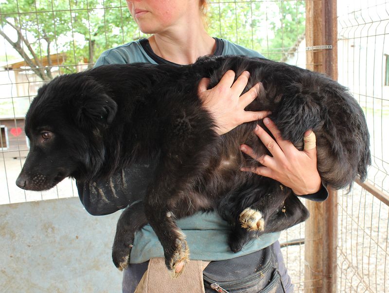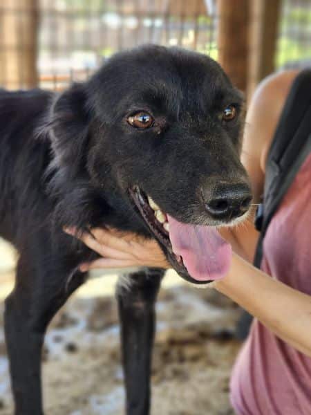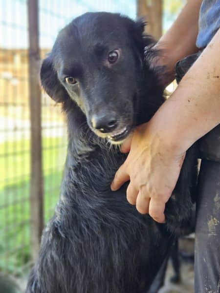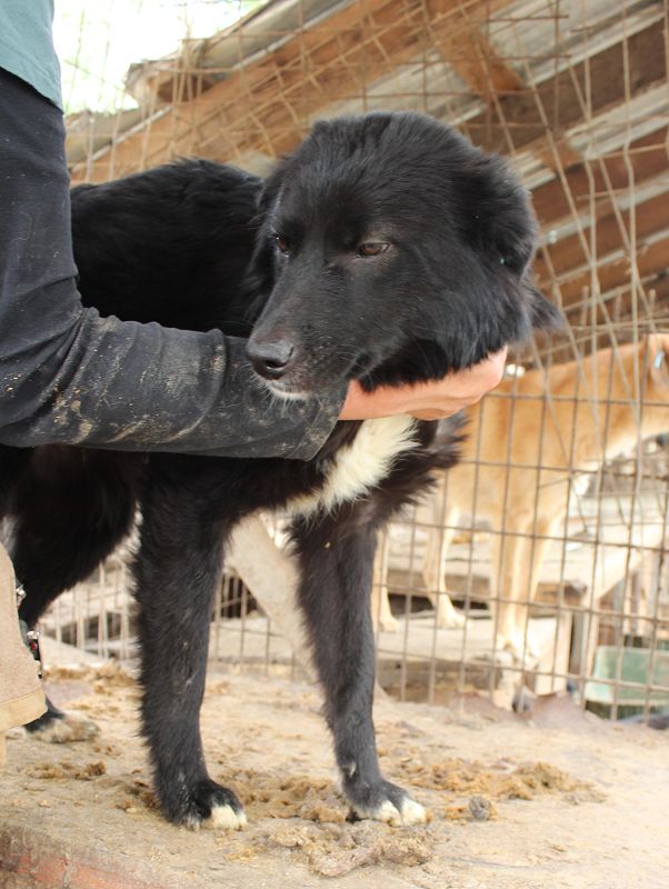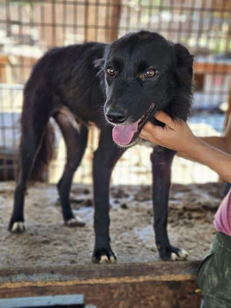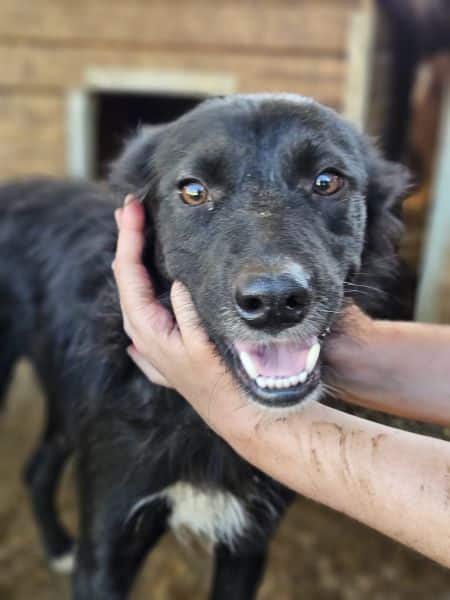 CASSIUS ist ein hübscher, schwarzer Kuschelbär mit Bernsteinaugen und weißen Zehensöckchen. Als wir den Zwinger betraten, hat er uns gleich freundlich begrüßt und ließ sich problemlos hochheben. Er genoss es sehr von uns die so seltene Aufmerksamkeit zu bekommen. Während der Aufnahmeprozedur in unsere Liste stand er ruhig auf dem Hüttendach und konnte nicht genug von den Streicheleinheiten bekommen. CASSIUS wurde weicher, legte die Schnauze in die Hand und entspannte sichtlich zunehmend. Das war ein schöner Moment für alle. CASSIUS ist ein freundlicher Hund, der sich nach seinen Menschen sehnt und auch ahnt, dass sie irgendwo da draußen sind. Dieser freundliche Jungrüde wartet auf Menschen, die ihm Nähe und Geborgenheit schenken und ihm die Welt zeigen möchten.