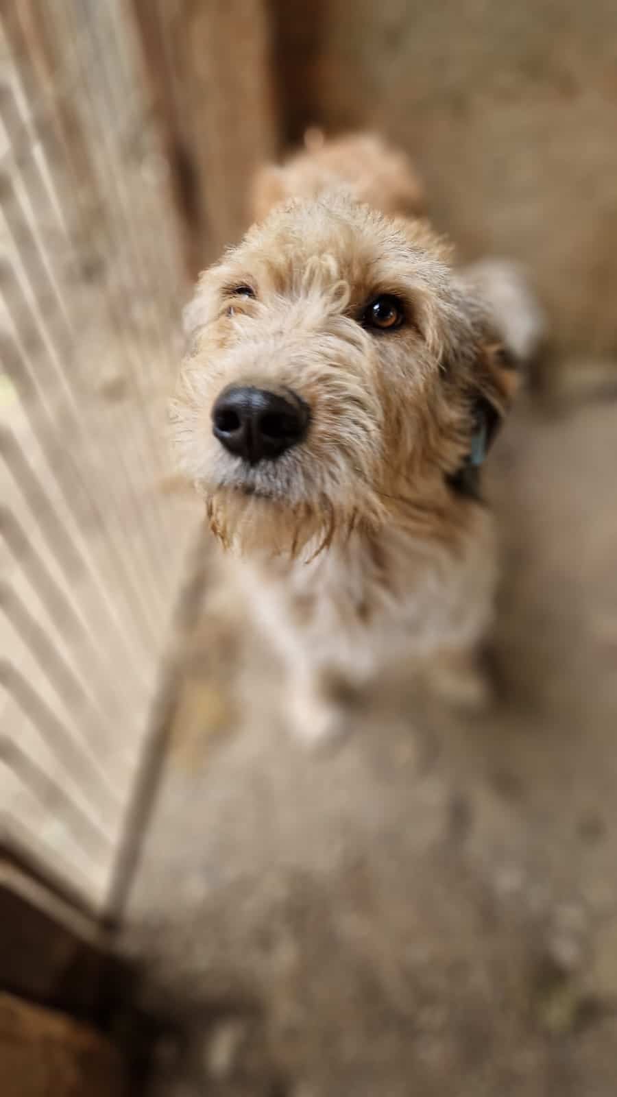 CASY ist ein sehr netter Rüde, der viel zu dünn in einem sehr kleinen Kennel mit 3 anderen großen Hunden sitzt. Wir konnten den auffällig ruhigen Rüden problemlos streicheln. Er machte einen sehr netten Eindruck auf uns, war nicht aufdringlich, sondern abwartend. Optisch sieht man durch sein Fell nicht, wie dünn CASY ist, beim Abtasten konnte man aber die Wirbelsäule fühlen und auch die Beckenknochen. Er wollte immer wieder Kontakt zu uns und war sichtbar glücklich, dass wir ihm etwas Zuwendung schenken konnten.
