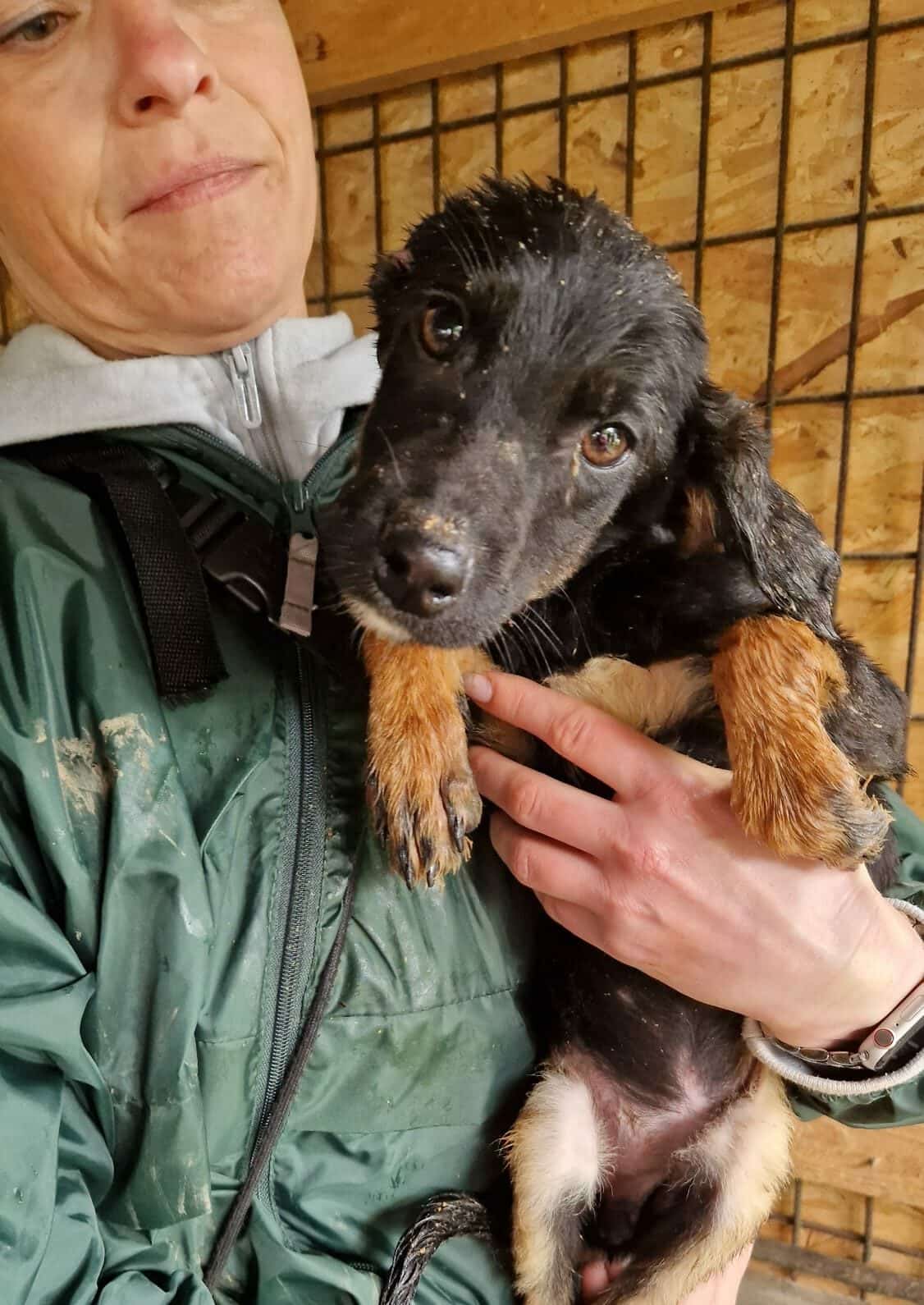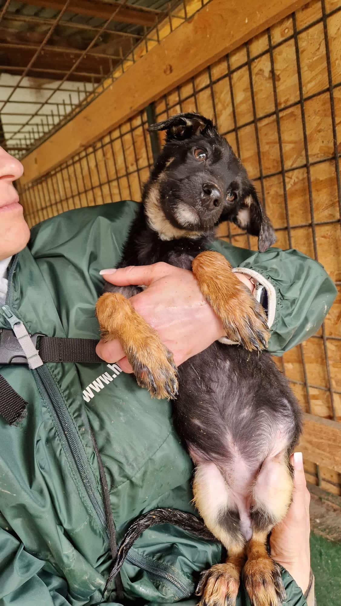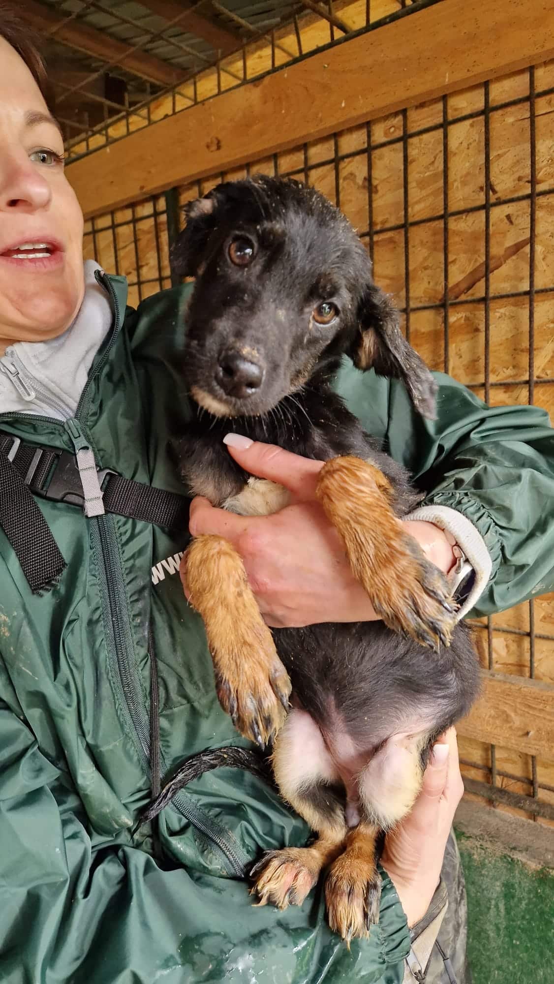 Der Anblick der kleinen CATIE, die aktuell in einem der kleinen dunklen Vetkennel-Abteile aufwächst, gab uns einen richtigen Stich ins Herz. Hungrig suchte sie den Boden nach Futter ab, denn es fällt ihr schwer, aufgrund ihrer körperlichen Einschränkungen an die Futtertröge zu kommen. Warum sie ihren Kopf so schief hält und ob man da noch was machen kann, wissen wir leider nicht. Sobald die zuständige Tierärztin ihr Ok gibt, sollte CATIE dringend ausreisen dürfen, denn Bucov überlebt sie so nicht.Sie ist ein ganz liebes Mädel, das sich problemlos hochnehmen ließ. Hier spürte man nochmal besonders, dass sie kein Gramm Fett am Körper hat, sie ist wirklich nur Haut und Knochen.