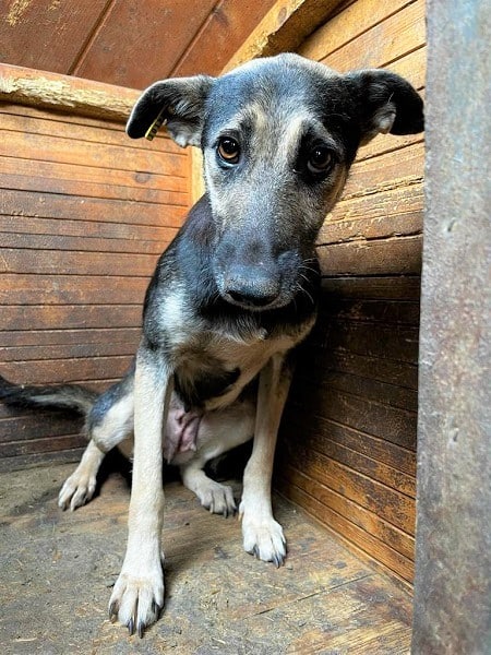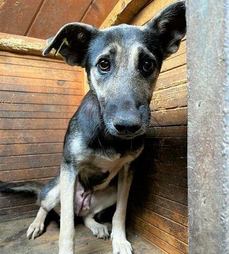 Hündin geb. ca. 2021 Größe: ca. 45cm hustet (08/2023)
