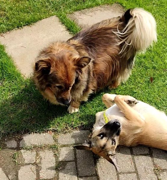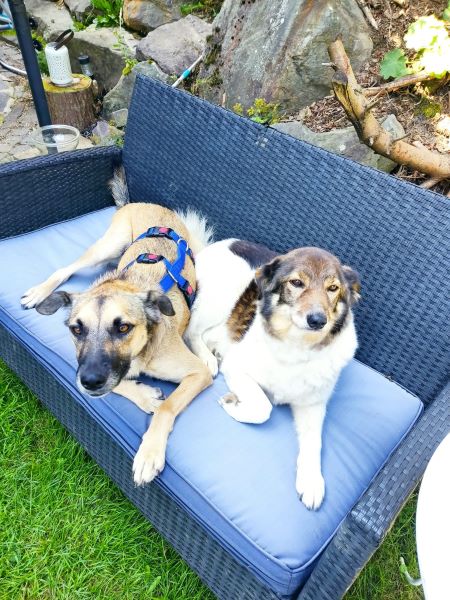 Sie lebt bei uns mit Katzen und zwei anderen Hunden zusammen. Kinder mag sie auch. Diese sollten etwas standfester sein, da Caya oft ihre Kraft nicht einschätzen kann und etwas tollpatschig ist.