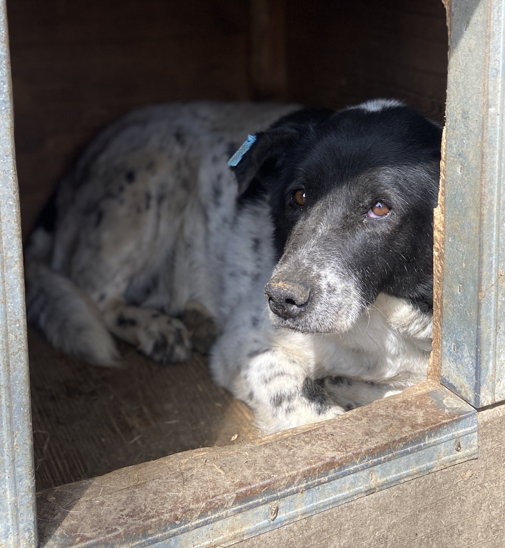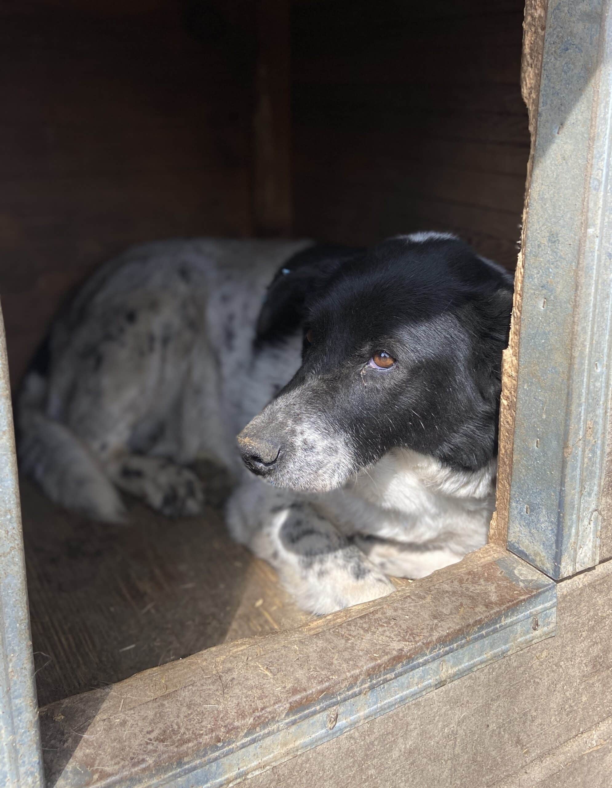 Omi CECILIA ist alt geworden, sie hatte keine Lust oder Kraft aus der Hütte zu kommen. Die Leckerlies nahm sie in unserer Anwesenheit, hatte aber mächtig Probleme diese zu kauen. Streicheln lassen wollte sie sich nicht, aber sie blieb bei den Versuchen stets defensiv und zeigte kein Abwehrverhalten. Sie lebt in einem sehr großen gemischten Rudel und zeigt sich dort verträglich. Für unsere Omi CECILIA wünschen wir uns, dass sie noch einmal Gras unter ihren Pfoten spüren darf, ein warmes weiches Bettchen und Menschen mit viel Geduld, die nicht mehr zu viel von ihr erwarten.