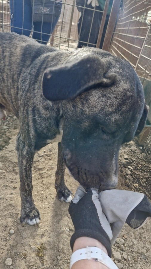 Der süße CEDDY beobachtete uns bereits aus der Ferne, lag ruhig auf seiner Hütte und schaute uns aufmerksam zu. Kaum standen wir vor seinem Kennel, war seine Freude deutlich spürbar – und als wir den Kennel schließlich betraten, konnte er diese kaum noch zurückhalten. CEDDY genoss die viel zu seltene Aufmerksamkeit in vollen Zügen und holte sich dankbar sowohl Streicheleinheiten als auch Leckerchen ab. Er zeigte sich freundlich, verspielt und voller Neugier – ein echter Sonnenschein, der einfach nur gefallen will. Da er alleine lebt, können wir zu seiner Verträglichkeit mit Artgenossen keine verlässliche Aussage treffen. Leider bietet sein viel zu kleiner Kennel keinerlei Möglichkeit, sich richtig zu bewegen und auszulasten. CEDDY sehnt sich nach mehr – nach Platz, Beschäftigung und vor allem: nach lieben Menschen, bei denen er endlich ankommen darf.