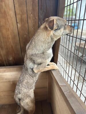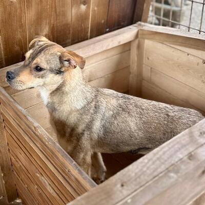 Dieser schüchterne Rüde ist noch sehr vorsichtig im Umgang mit Menschen. Während er sich unter sanftem Druck streicheln ließ, war deutlich zu spüren, wie sehr ihn die Situation verunsicherte – er erstarrte und schien still darauf zu warten, dass es vorübergeht. Als er sich schließlich in Bewegung setzte, wich er jeder Annäherung aus und hätte den Kennel am liebsten verlassen. In seiner Hundegruppe zeigt er sich hingegen verträglich und sozial. Für ihn wünschen wir uns ein ruhiges, erfahrenes Zuhause mit Zweithund, in dem man ihm mit viel Geduld, Verständnis und ohne Erwartungsdruck begegnet – damit er in seinem Tempo lernen darf, Vertrauen zu fassen.