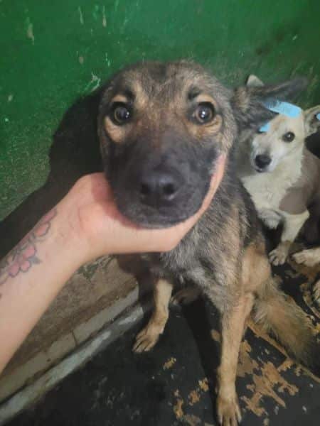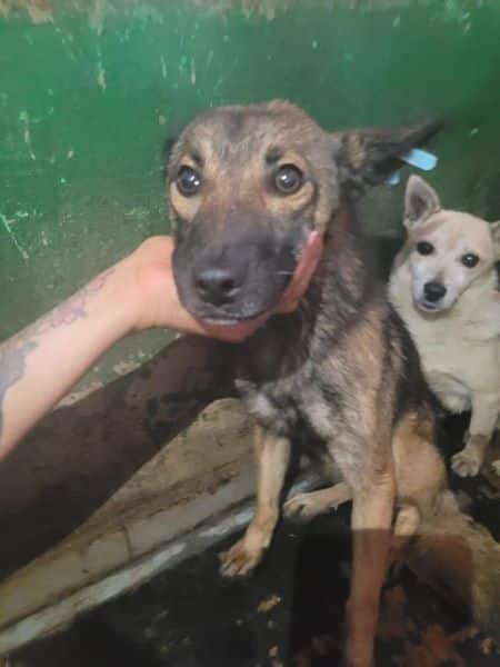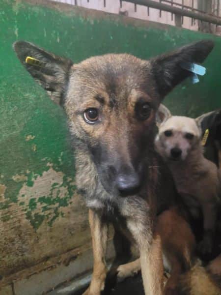 Diese arme Seele. Die Situation in den dunklen VetKennels ist bereits für uns Menschen bedrückend, wie muss es erst für die Hunde sein? Um überhaupt Bilder/Videos machen zu können, wird zusätzlich mit einer Taschenlampe gearbeitet. Dann auf 3 qm mit insgesamt 8 Hunden und zwei Erfasserinnen. Dafür hat es diese nette und sensible Hündin ganz wunderbar gemacht. Wir konnten sie prima anfassen und streicheln. Ihr war es zwar nicht geheuer – wie auch – aber hat gespürt, dass wir ihr nichts tun wollten. Ein wunderbarer, sehr verträglicher Schatz, der hoffentlich schnell seine Menschen findet. Sie sitzt zwar mittlerweile in einem Außenkennel, aber sicher ist das auch nicht.