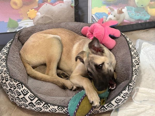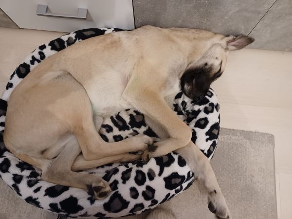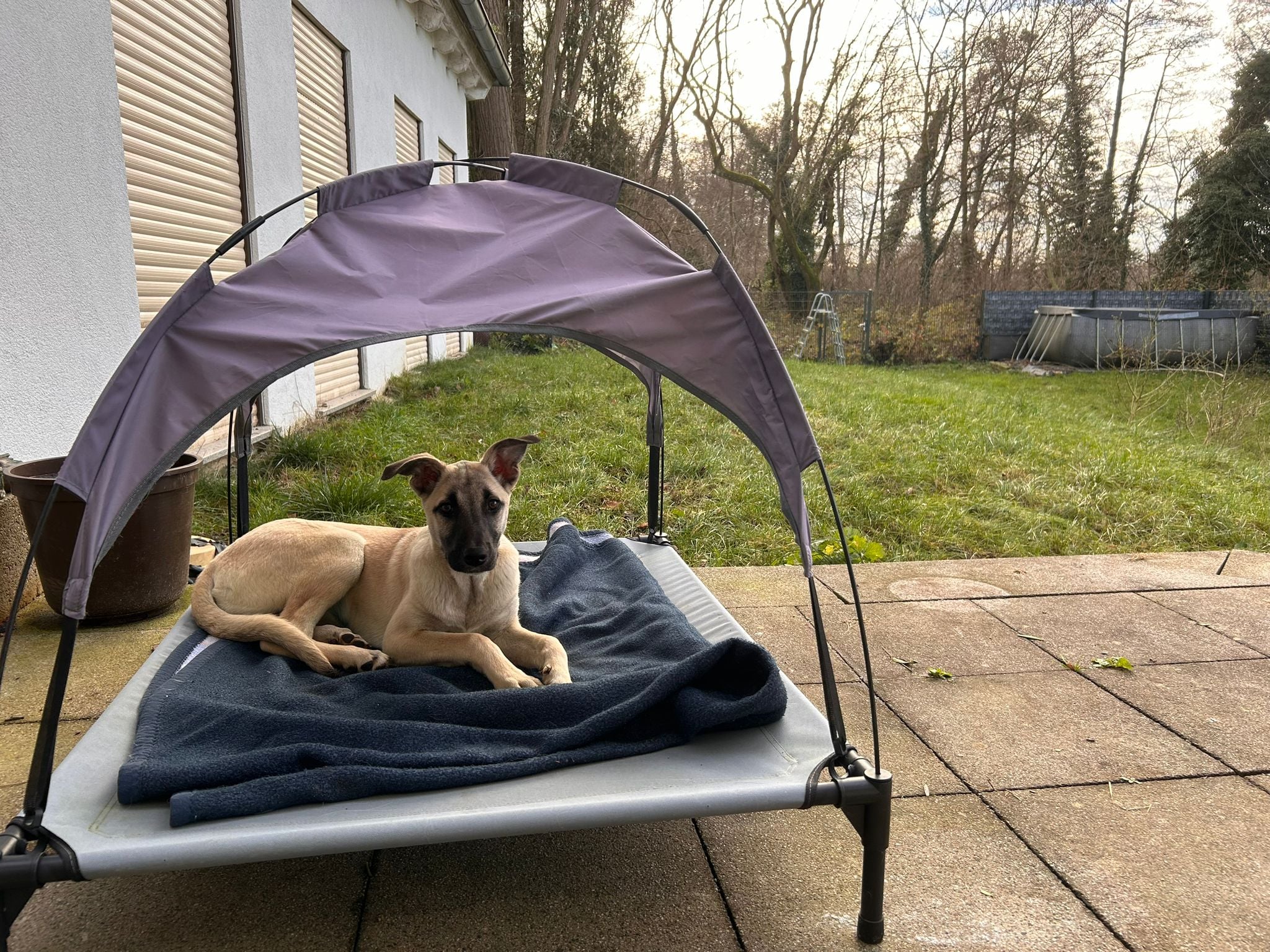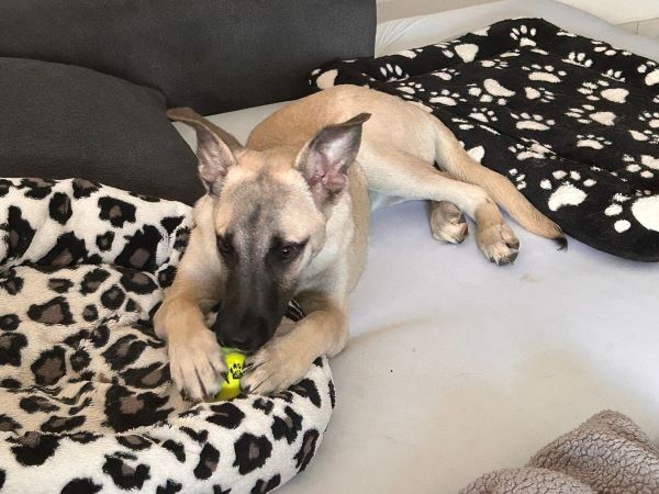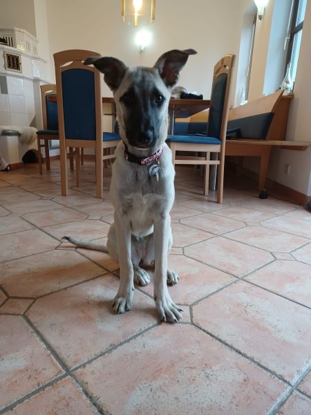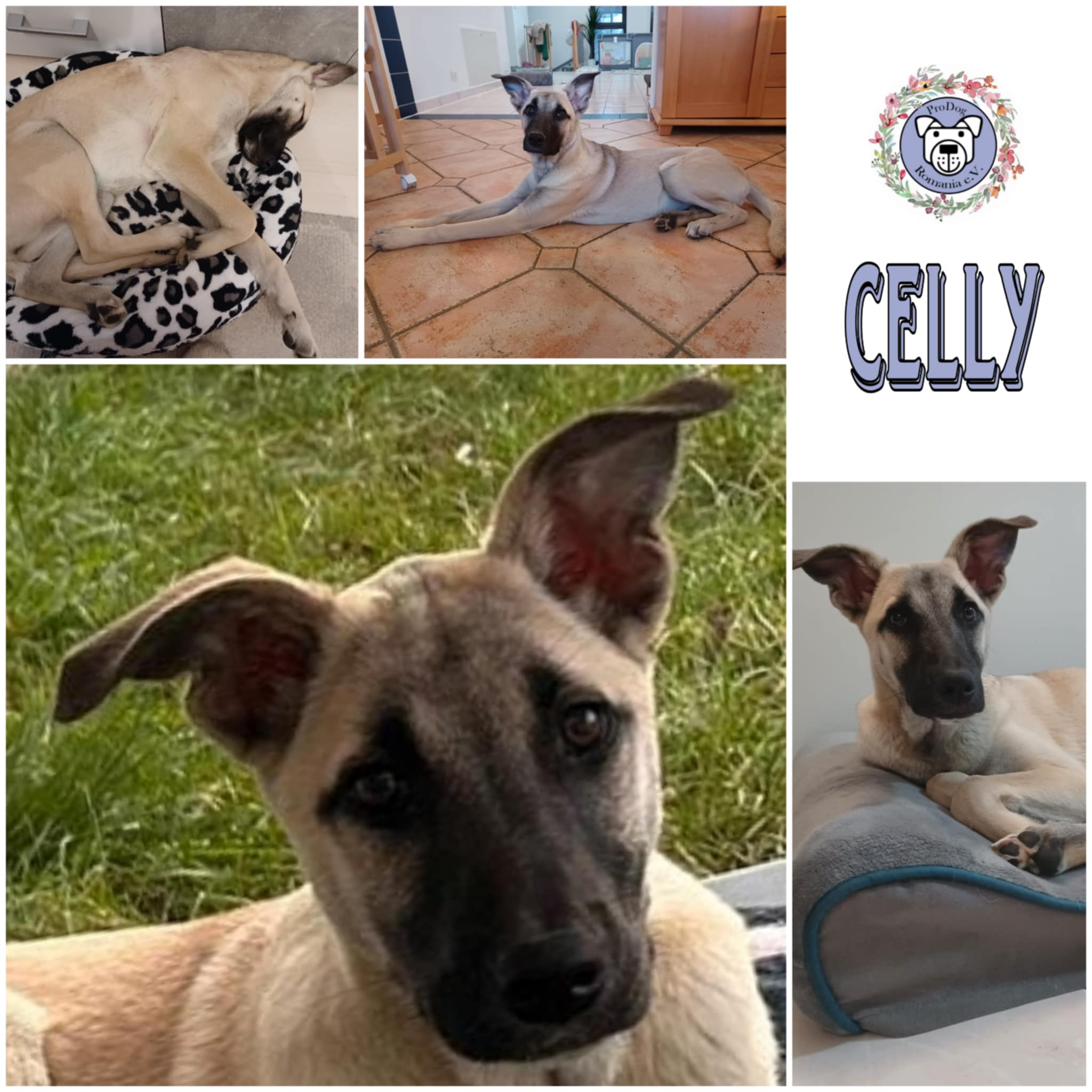 Celly kam kurz vor Weihnachten 2024 in Stutensee bei uns – ihrer Pflegestelle – an. Ihre anfängliche Schüchternheit hat sie innerhalb weniger Tage abgelegt und sie ist nun, bei ihr bekannten Menschen, ein verspieltes, verkuscheltes und aktives Welpenmädchen. Mit ihrer freundlichen und offenen Art versteht sie es, ihre Hundefreunde zum Spielen, Toben aber auch zum Kuscheln zu animieren. Welpentypisch liebt auch Celly Schuhe, Socken, Kartons oder was sie sonst so findet, und versteckt sie an allen möglichen Orten. Sie kann aber in ihrem Bettchen oder auf der Couch auch sehr gut zur Ruhe kommen und lässt sich dabei ausgiebig ihr Bäuchlein kraulen. Auch Küsschen geben – egal ob bei Menschen oder Hunden – ist ihre große Leidenschaft.