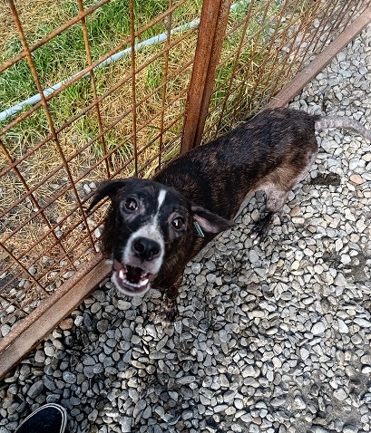 Außerdem zeigt sie sich absolut verträglich und meidet Konflikte, und das, obwohl sie bereits gebissen wurde. Sie hat ihr ganzes bisheriges Leben in einem Kennel im Vethouse verbracht und konnte nun wenigstens in einen Außenkennel umziehen. Aber sie ist ein junger Hund, der nichts kennt und nichts vom Leben erwartet. Wie denn auch?