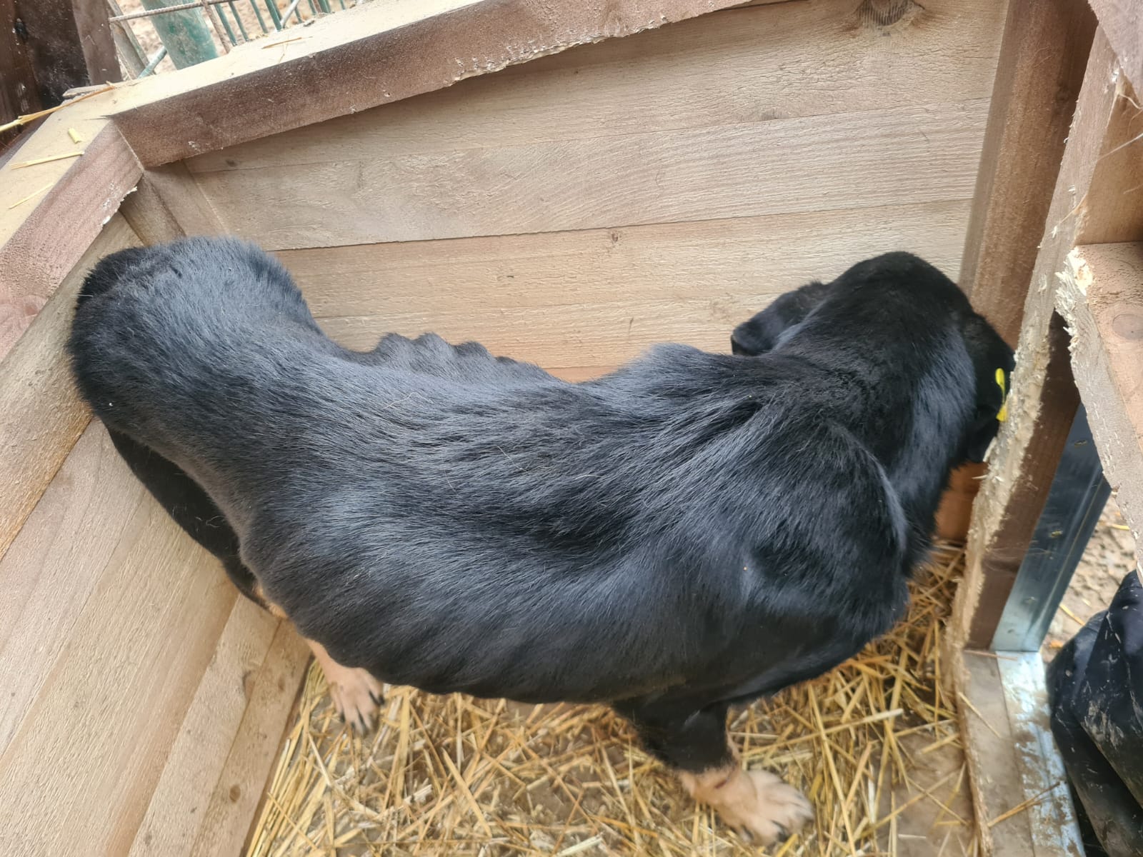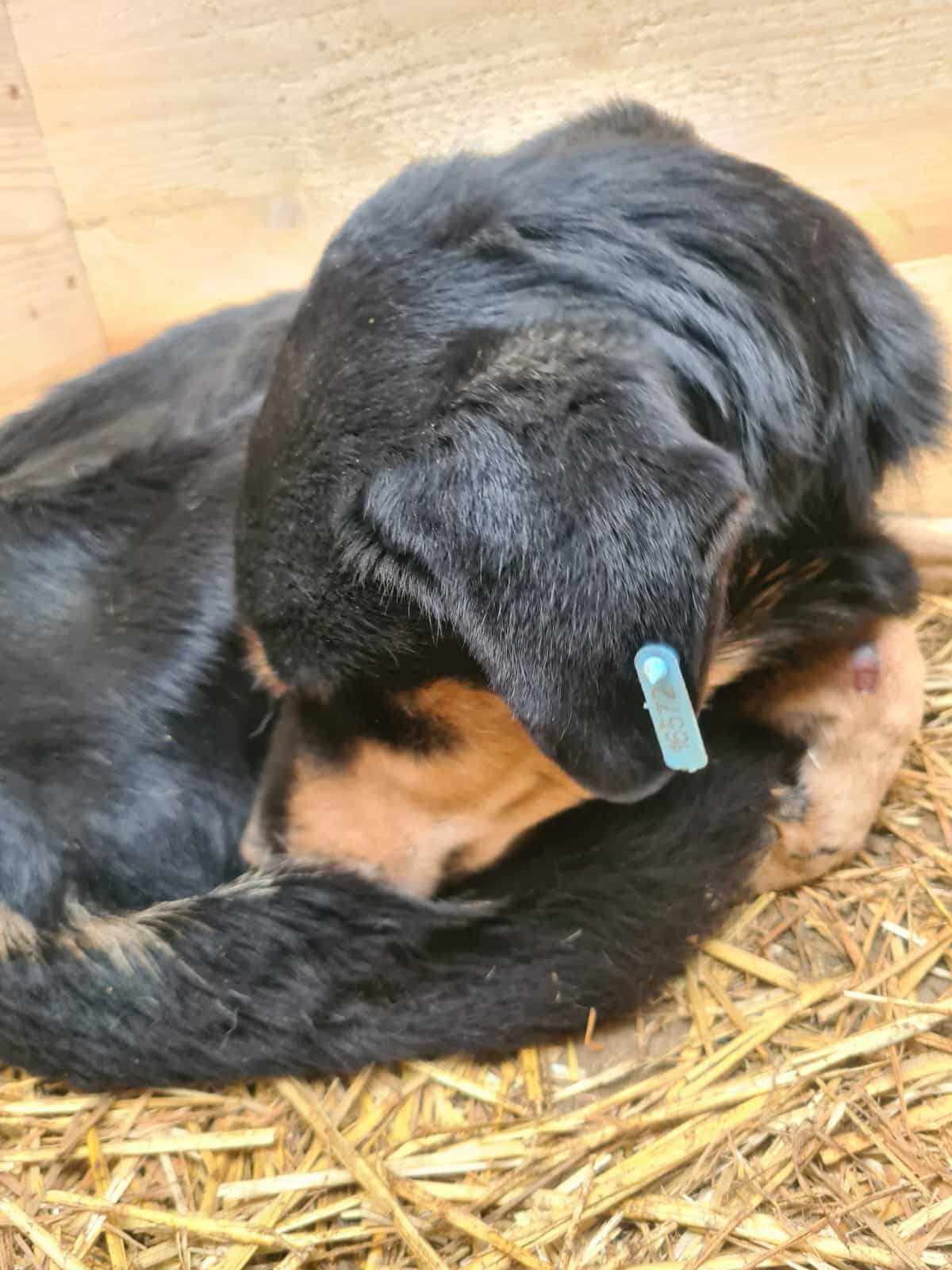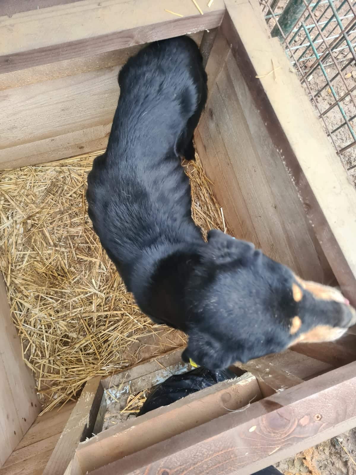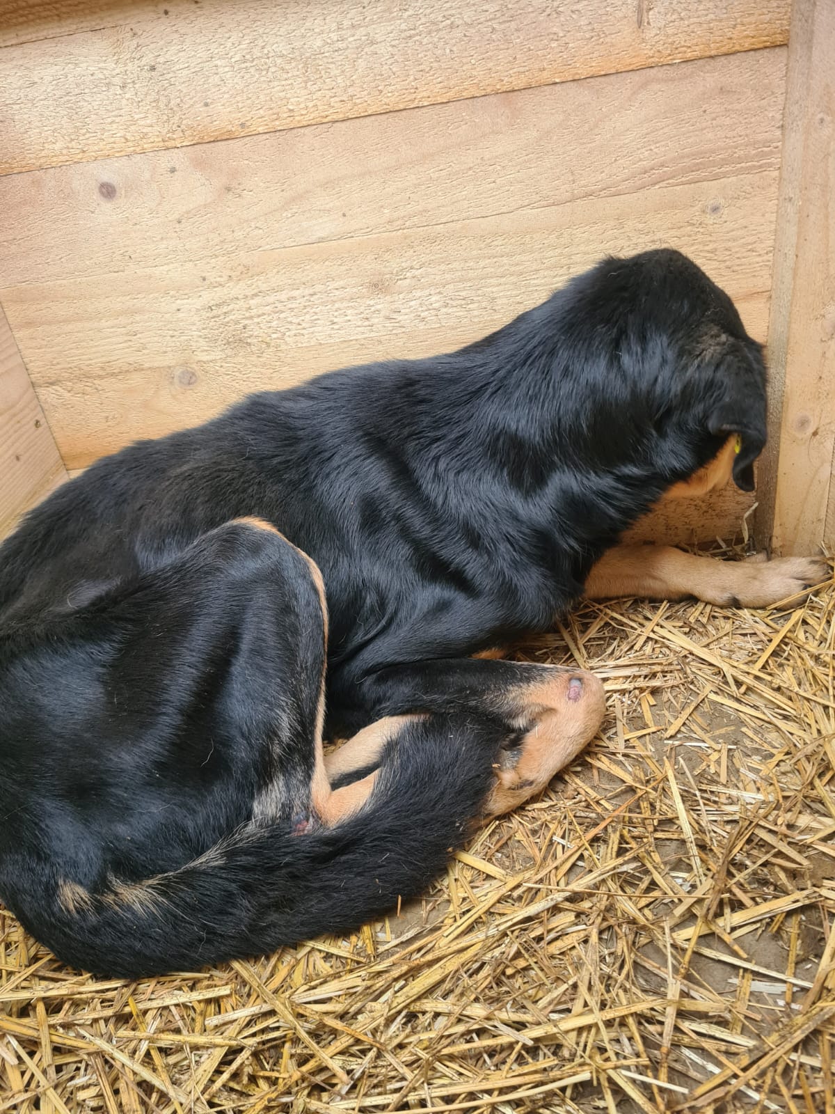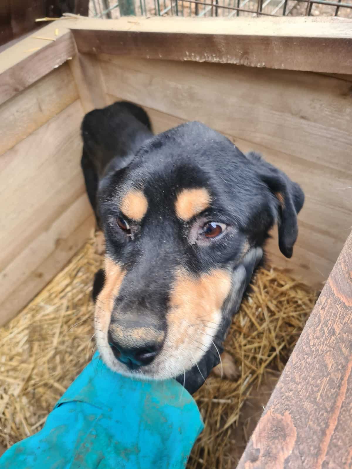 Rüde geb. ca. 2019 Größe: ca. 55cm wahrschl. Rotti-Mix abgemagert (12/2022)