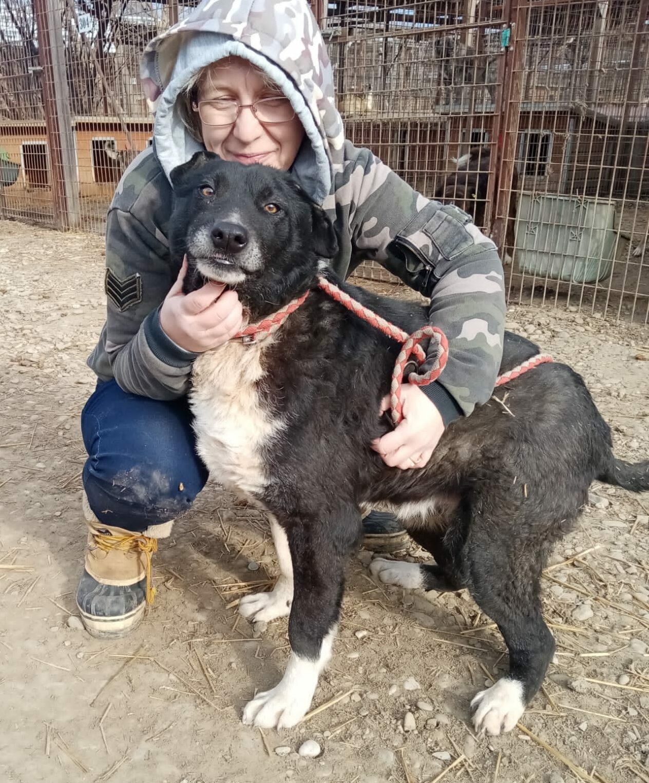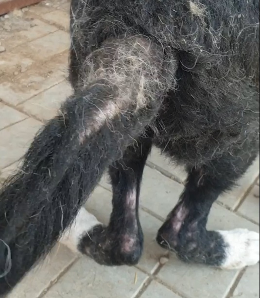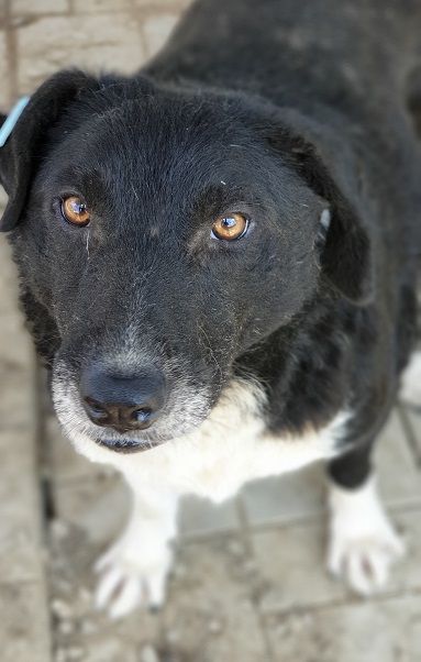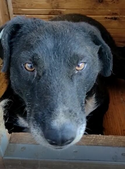 CHAMB leidet sehr und das sieht man ihm an. Mit letzter Kraft ist er aufgestanden und hat sich aus der Hütte geschleppt, um uns zu begrüßen. Er lässt sich streicheln, wir wollten ihn aber nicht unnötig belasten.