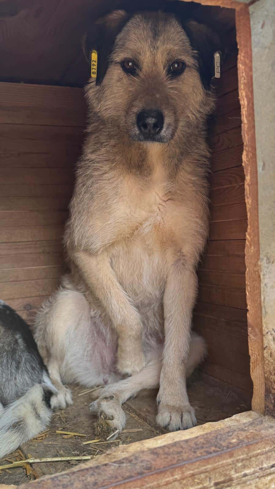 CHANIN hat sich bei unserem Besuch leider unsicher gezeigt. Sie hat uns erst verbellt, dann zwar unsere Leckerlies vom Boden genommen, aber bei Annäherung unserseits weicht sie zurück.