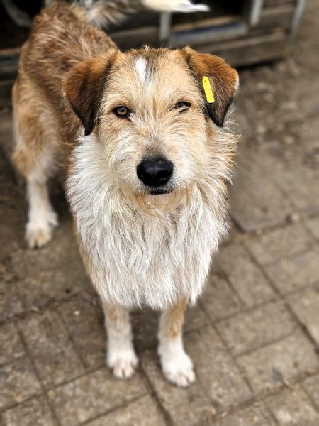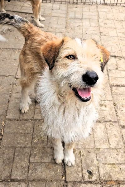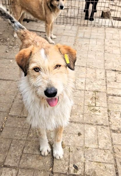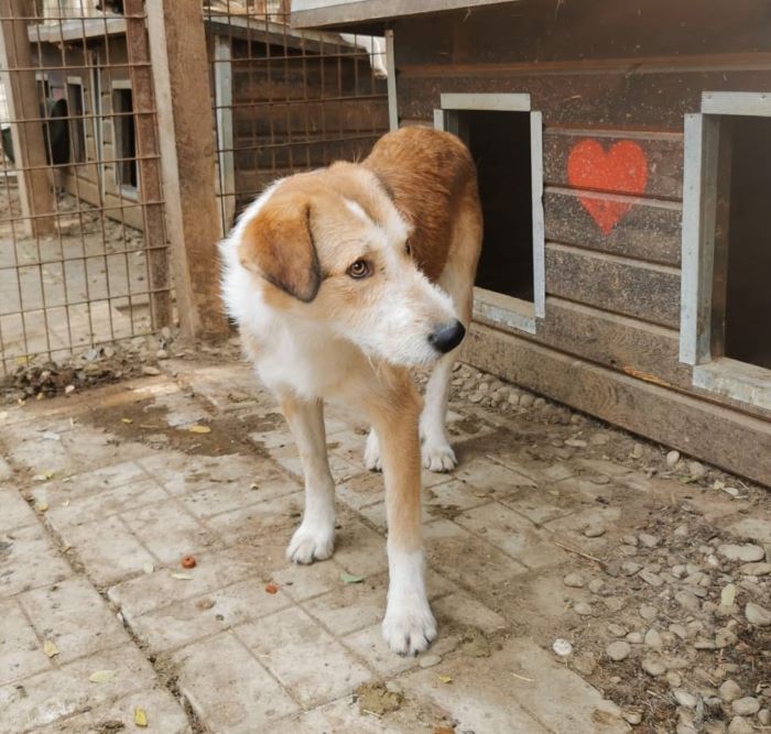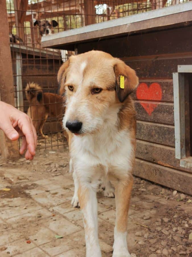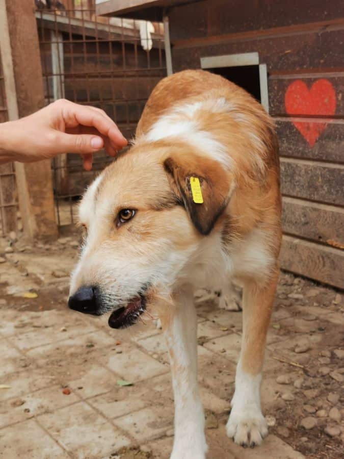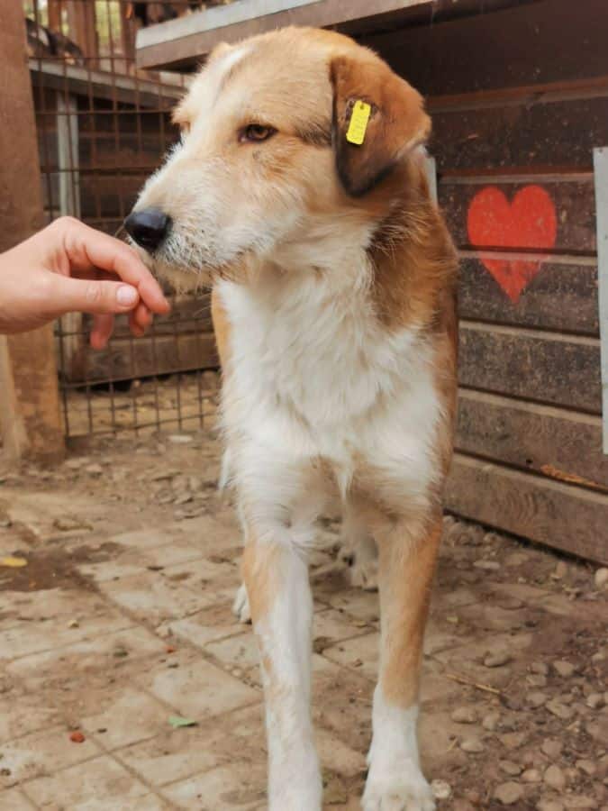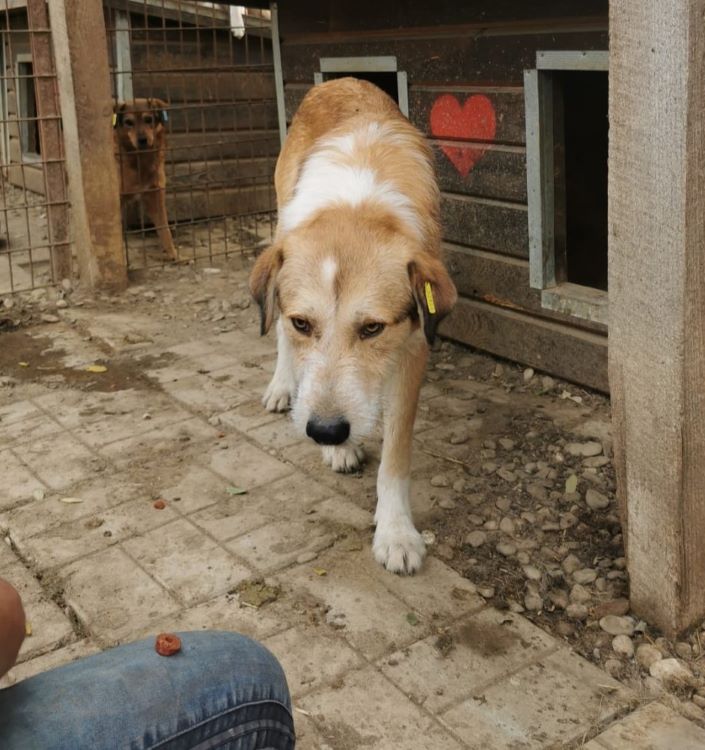 Dieser wunderschöne Rüde mit seinen ausdrucksstarken Augen ist neu in Bucov und vom Shelterleben sichtlich beeindruckt. Dennoch war er neugierig und nahm vorsichtig Kontakt zu uns auf. Unsere mitgebrachten Leckerchen nahm er aus der Hand und ließ sich dabei vorsichtig anfassen. Zu mehr fehlte ihm der Mut. Wir sind sicher, dass er in einer ruhigen und verständnisvollen Umgebung sehr schnell auftauen wird. Er lebt in einem gemischten Rudel und scheint dort verträglich zu sein.