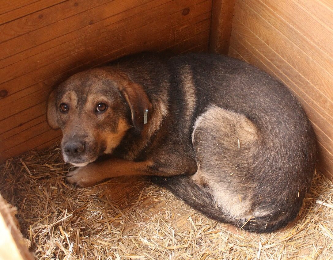 CHASKA ist nach wie vor ein etwas scheuer Hund, der einfach nur versuchte, unserer Aufmerksamkeit zu entgehen. Dabei schlich er vorsichtig am Kennelrand an uns vorbei und versuchte, sich unsichtbar zu machen. Bedrängen wollten wir ihn nicht.