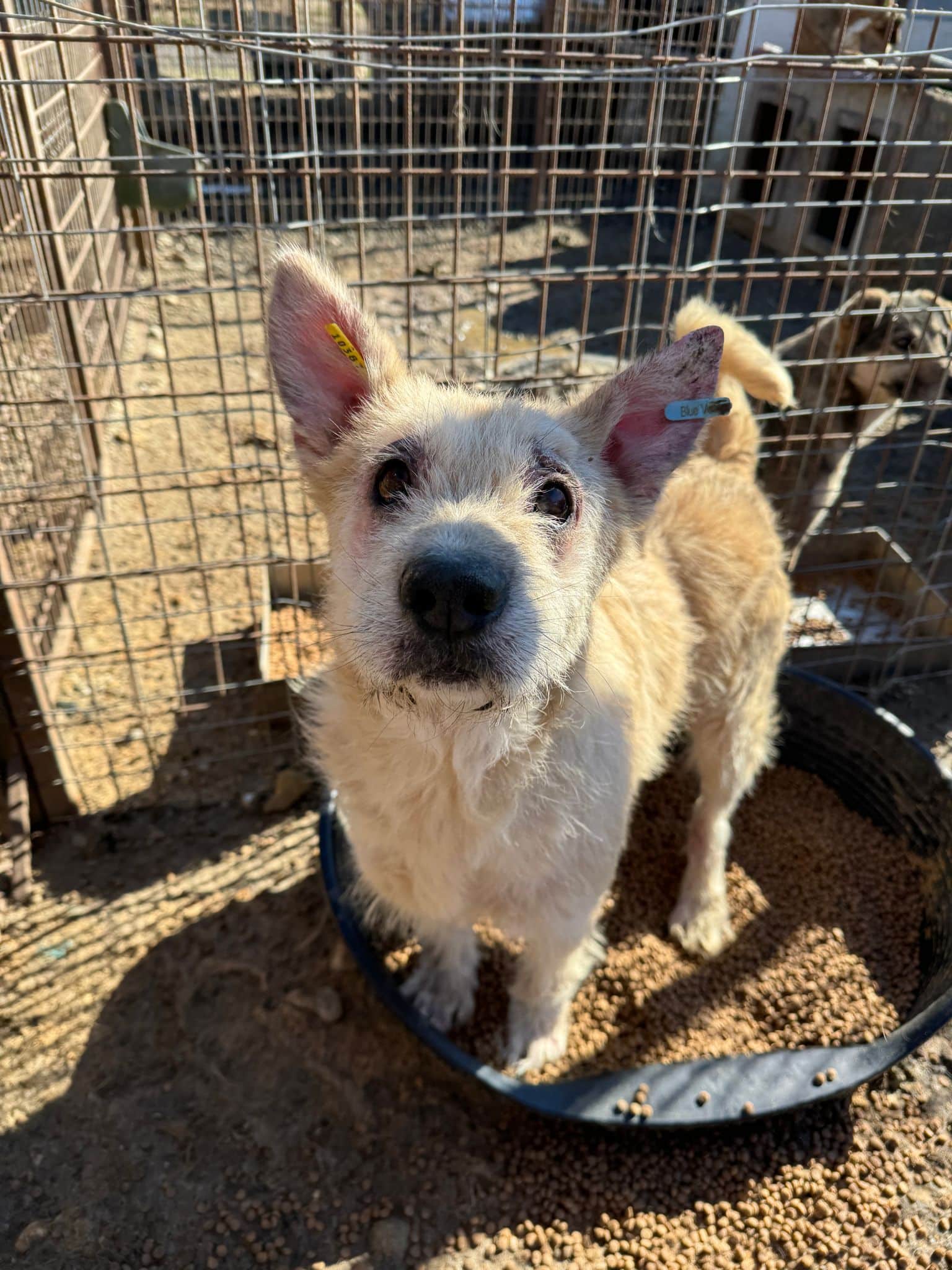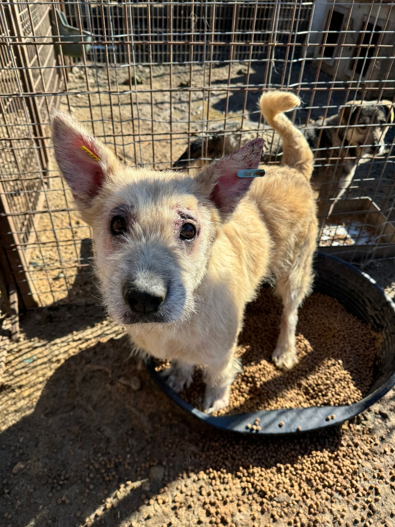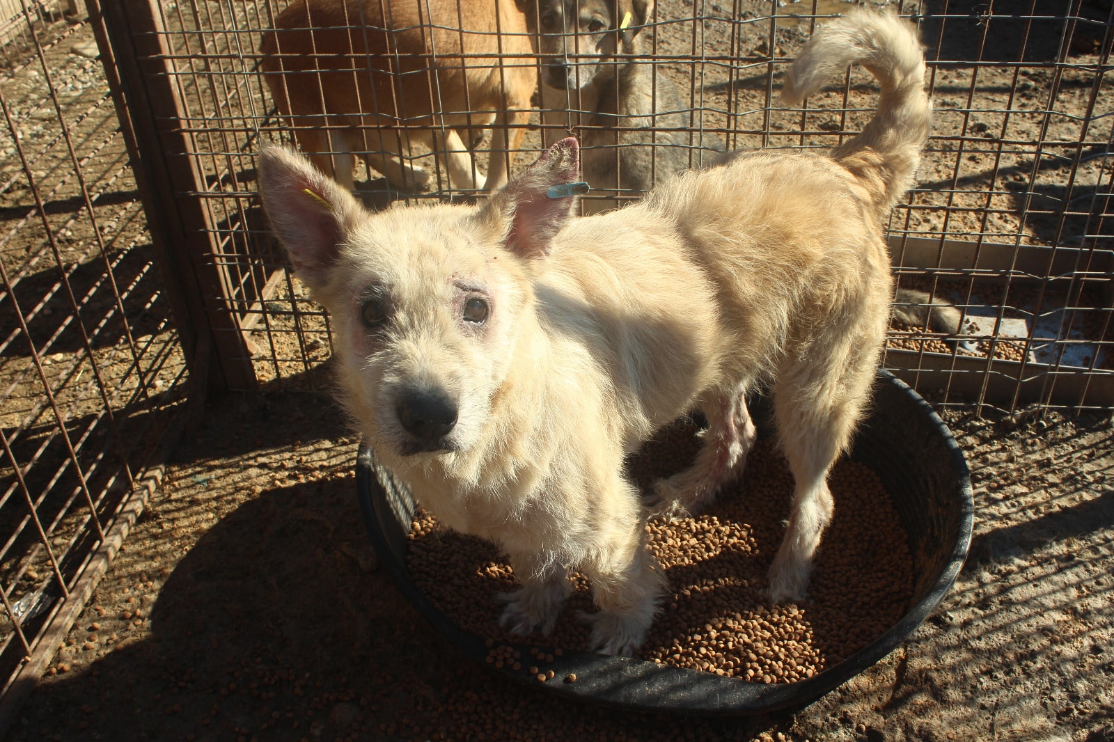 CHELSEA ist eine schon ältere Hündin, deren Anblick uns sehr berührt hat. Leider konnte sie erst im März 2024 für die Galerie erfasst werden, sitzt aber bereits seit Sommer 2023 in Bucov. Bei unserem Besuch hielt sie sich nur im Futtertrog auf, dem saubersten Platz in ihrem Kennel. Um ihre müden Augen machten sich Hautprobleme breit, sie machte auf uns einen gebrechlichen Eindruck und zeigte sich durchgehend sehr ruhig.