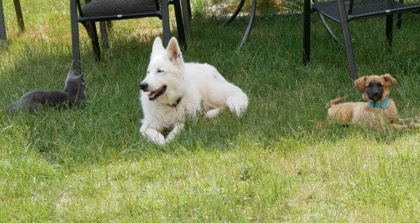 Im Rudel hat sie ihre feste Position; sie hat den Aufstieg als Spielpartnerin für die zunächst nicht erfreute Roosalie geschafft. Die beiden toben gerne und trotz Größenunterschied auf Augenhöhe miteinander. Die neu hinzugekommenen Welpen hat sie willkommen geheißen und gibt ihnen Raum in unserem Leben. Auch mit ihnen spielt und tobt sie gerne. Hierbei wird sie manchmal etwas lauter und es erscheint, dass das Spiel ernsthafter wird. Sie lässt sich aber gut korrigieren und kommt schnell auch wieder in gemächliches Fahrwasser.