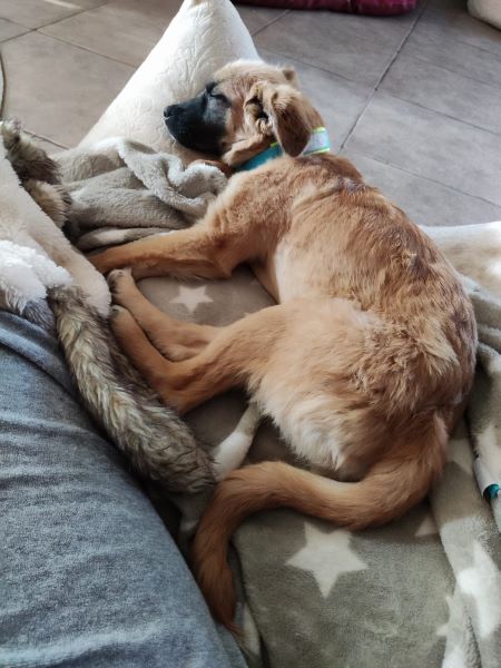 Chesta ist inzwischen fast stubenrein; man muss sie aufmerksam beobachten, dann erkennt man ihre sanften Zeichen, dass sie raus muss. Nachts schläft sie durch und morgens ist sie eher ein Langschläfer und will nicht gleich als erstes mit raus.