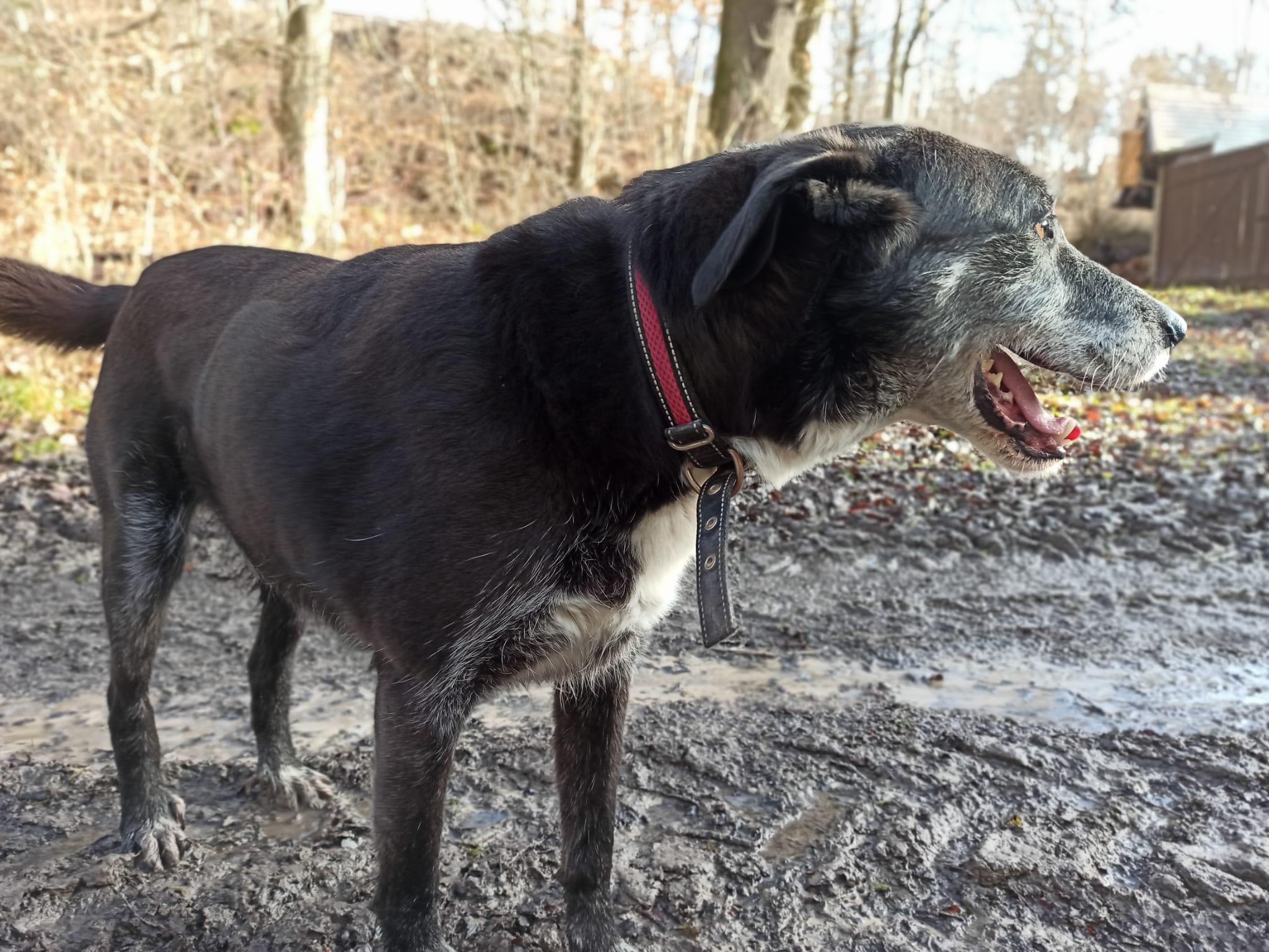 Beim Spaziergang zeigt er sich ebenfalls gelassen. Er flitzt gern mit den anderen Hunden und wenn ihm der Hase vor die Füße stolpert, so flitzt er auch sehr gern mit diesem. Aber die meiste Zeit ist er nicht weit entfernt von seiner Bezugsperson und schnüffelt in der Gegend herum. Am zuverlässigen Rückruf wird derzeit noch gearbeitet – für diesen hat er nämlich nicht immer Zeit.