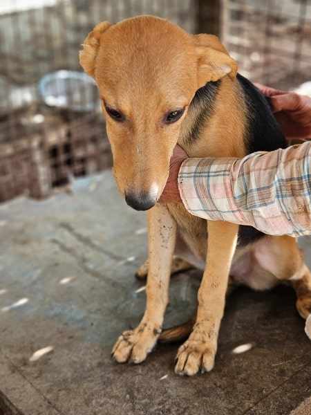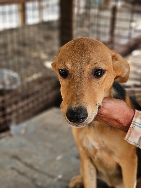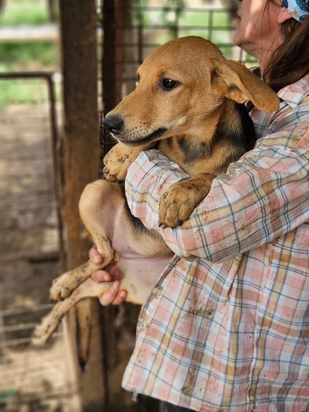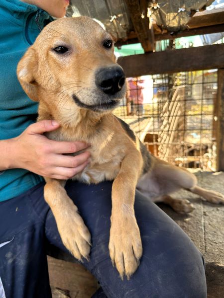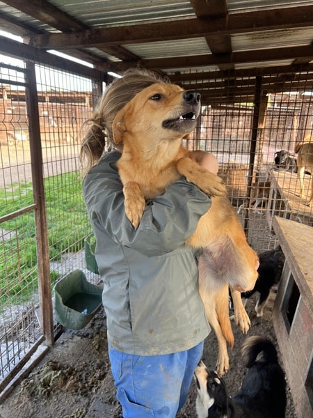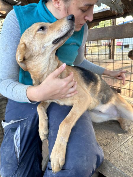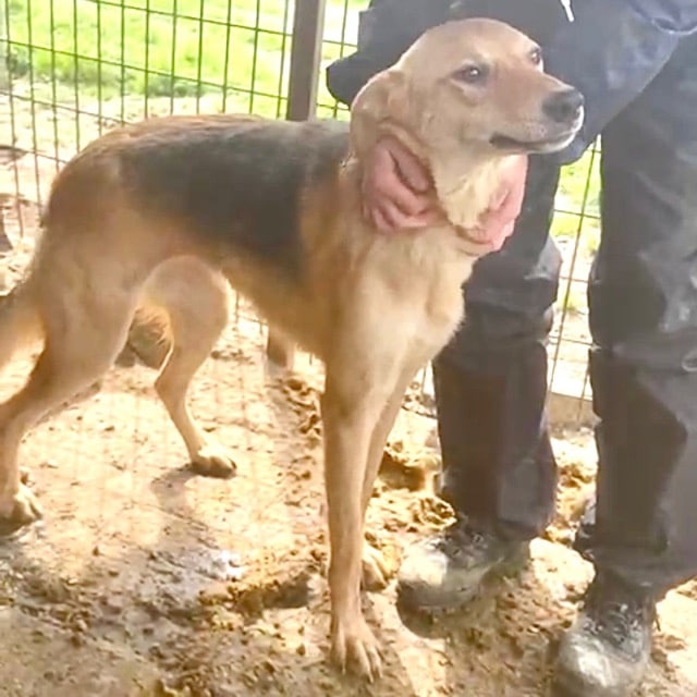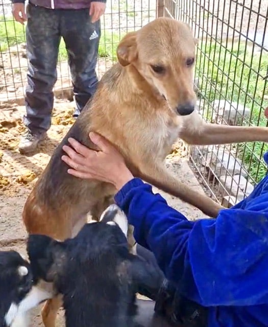 Chiara flüchtet bei Annäherung und ist bereits sehr unsicher. Auf unserem Arm ist sie nach kurzer Zeit aufgetaut. Dabei ließ sie sich fallen und konnte Streicheleinheiten genießen. Im gemischten Rudel lebt sie verträglich. Die liebe Hündin sollte schnellstmöglich in ein geduldiges Zuhause adoptiert werden, bevor es zu spät ist.