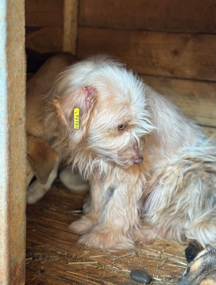 stark verfilztes Fell, frische Wunde am rechten Ohr (03/24)