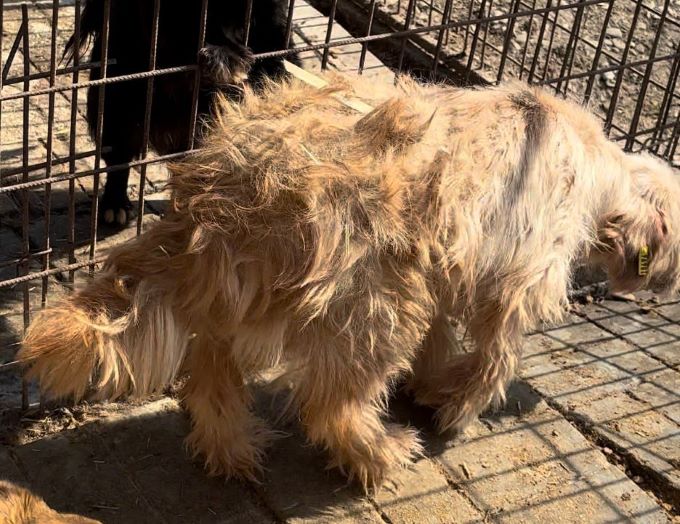 Ihr Fell ist weiterhin stark verfilzt. Sie wird Eingewöhnungszeit, viel Geduld, Liebe und sehr erfahrene Menschen brauchen, um das Vertrauen der Hündin zu gewinnen.