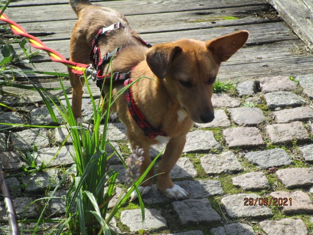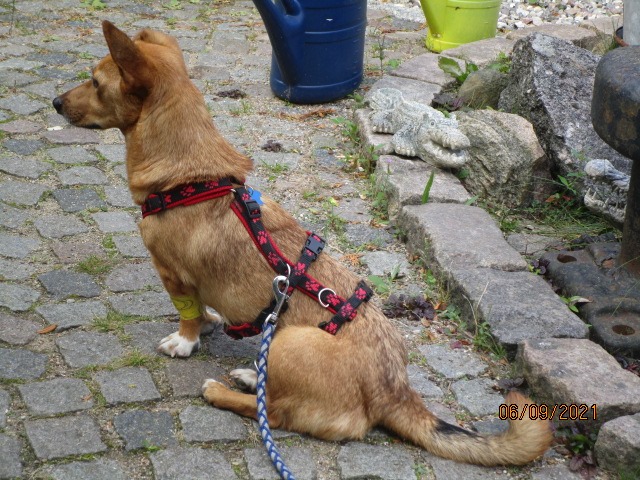 Chiva ist aufmerksam, neugierig, verschmust, sie läuft super an der Leine, auch gerne länger – bin noch vorsichtig mit Strecken, will sie ja nicht überfordern aber sie ist so agil.