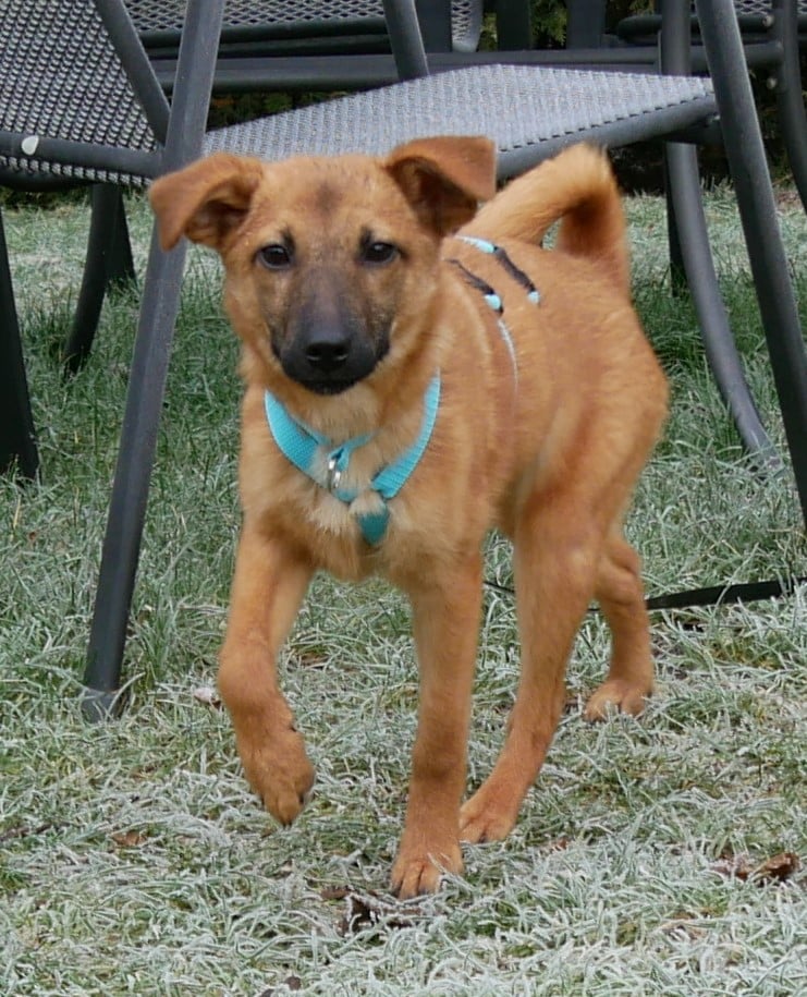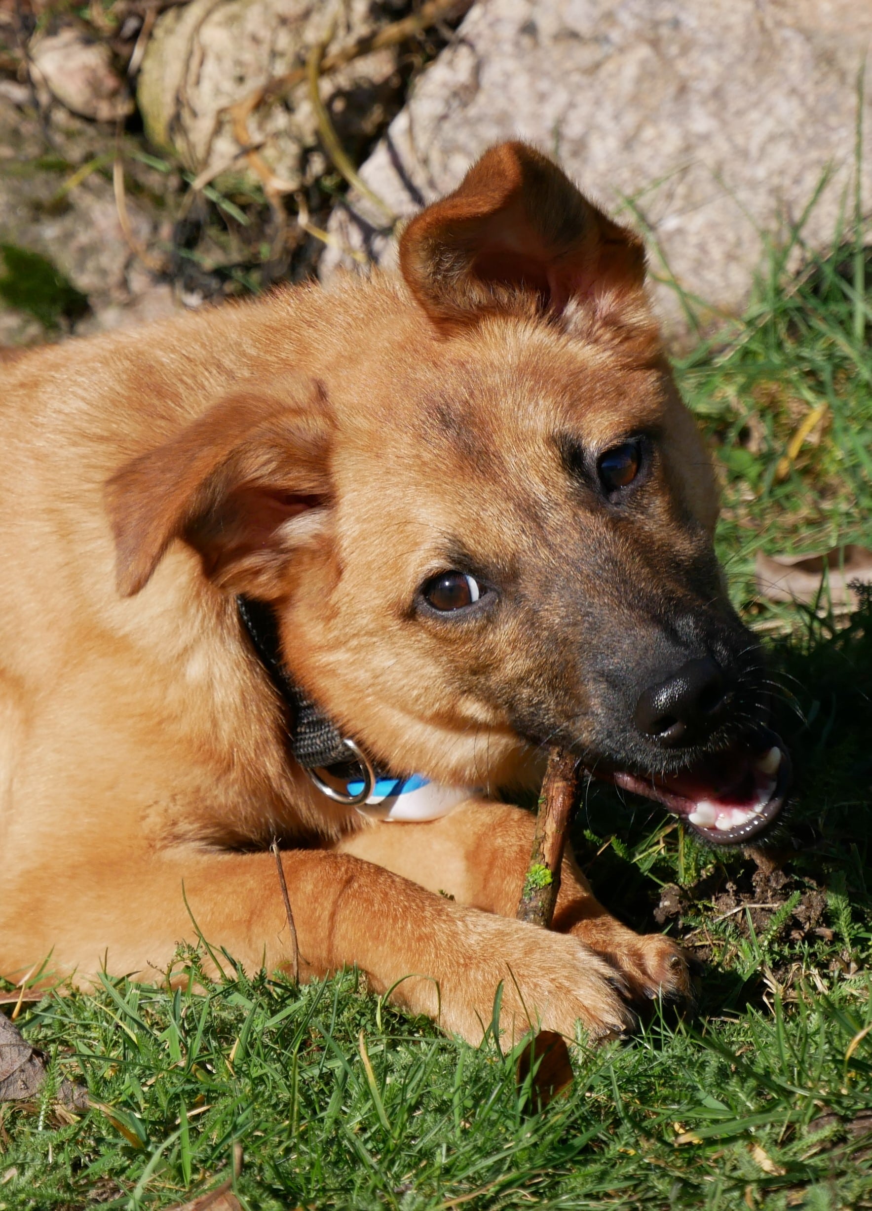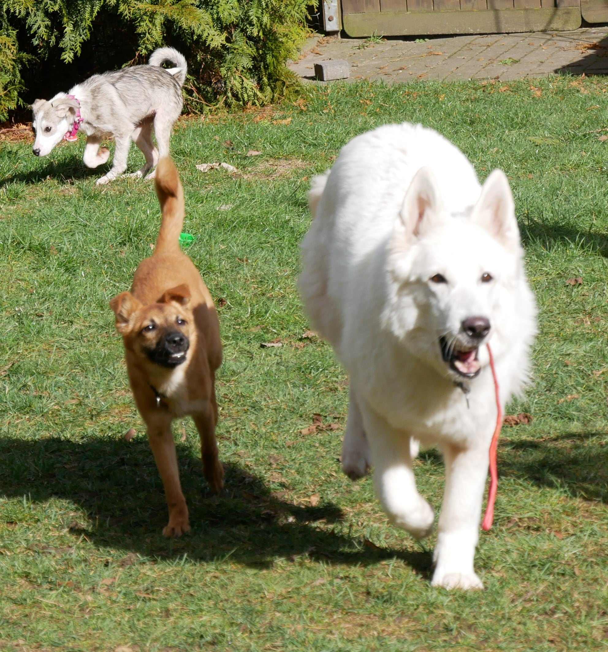 Inzwischen ist das Vergangenheit und aus der kleinen flüchtigen Hündin ist ein freudiges durchaus freches Früchtchen geworden, die einen forsch bellend zum spielen auffordert.