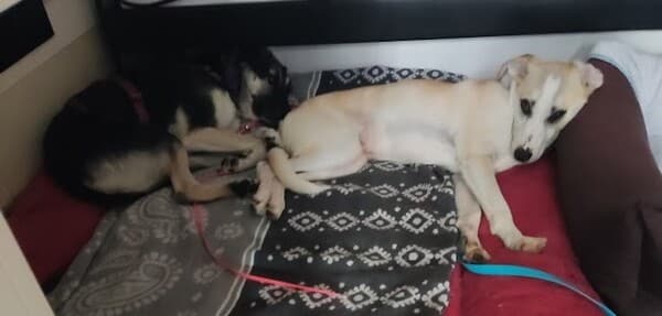 Die ersten Tage hat ihm seine kleine Reisebegleitung Alunia Mut gegeben und ihm gezeigt, wie nett und schön es mit uns Menschen sein kann. Inzwischen kommt er von alleine zu einem und freut sich über die gewonnene Freiheit, den Garten, das Gras, die Sonne, die Stille, die Sauberkeit, die Streicheleinheiten. Er mag bei einem sein, bittet um Aufmerksamkeit, ohne dabei aufdringlich zu sein. Hektische Bewegungen oder laute Geräusche sind im derzeit noch unangenehm und lassen ihn seinen sicheren Ort aufsuchen, seinen Lieblingsplatz neben dem Bett.