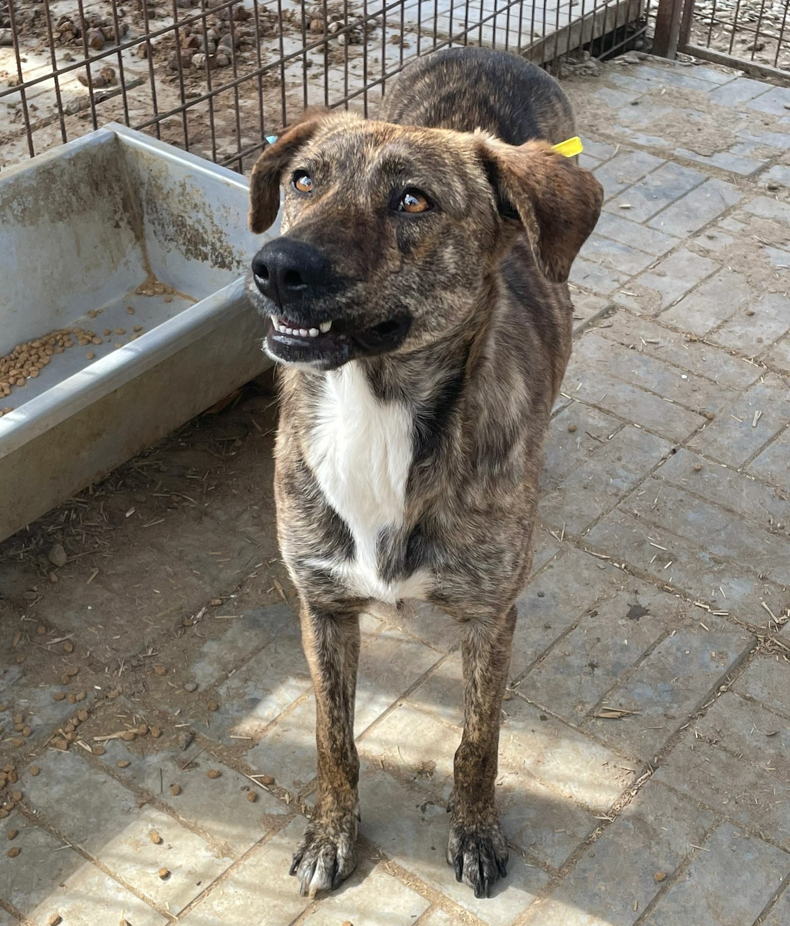 CLAIRE ist eine nette Hündin, die den Futtertrog ihr Zuhause nennt. Wir konnten sie gut streicheln und in ihrer gemischten Gruppe ist sie gut verträglich.