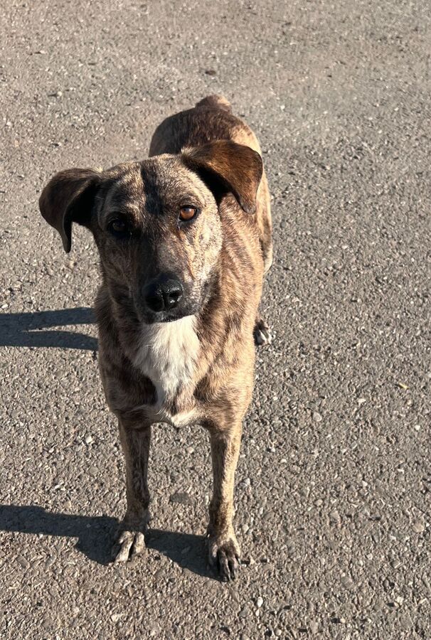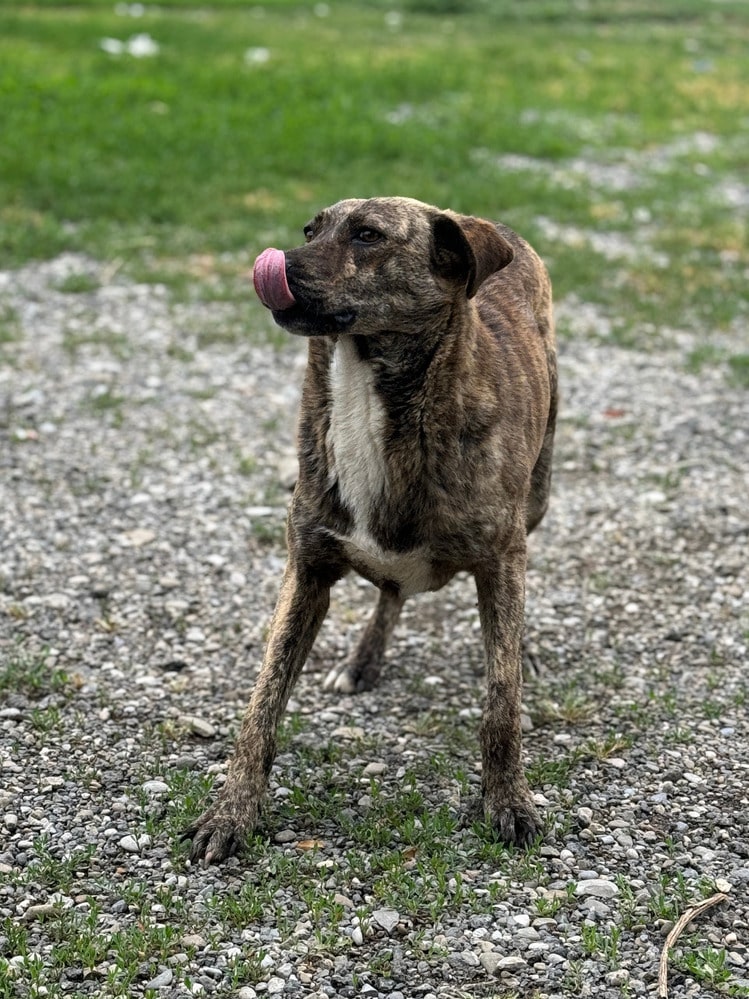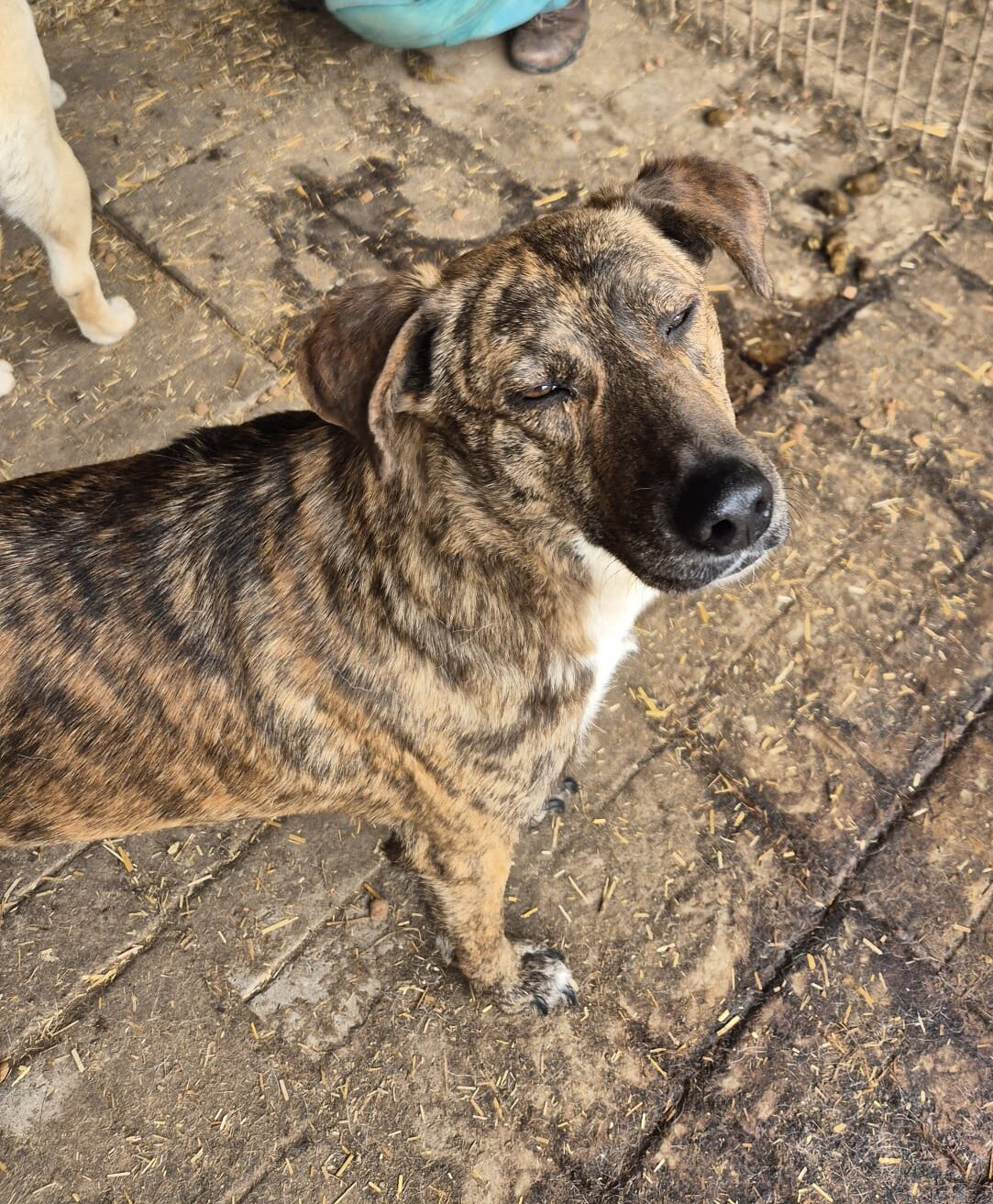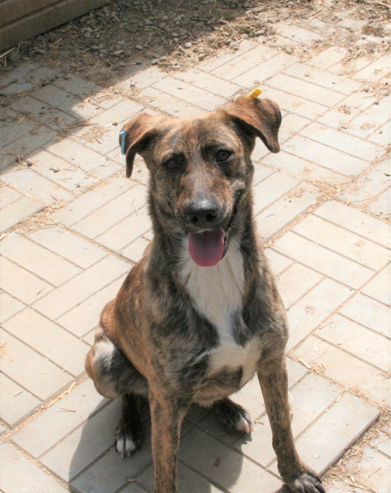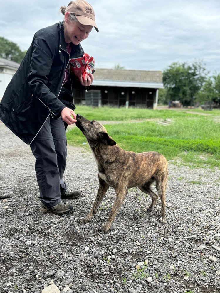 CLAIRE lebt im großen Shelter nun frei im Yard. Dort näherte sich uns die wunderschön gestromte Hündin mit der niedlichen Stummelrute ganz unaufdringlich und freute sich rührend über die Aufmerksamkeit, die Leckerlie und die sanften Streicheleinheiten. Mit den anderen freilaufenden Hunden zeigte sie sich souverän und verträglich.