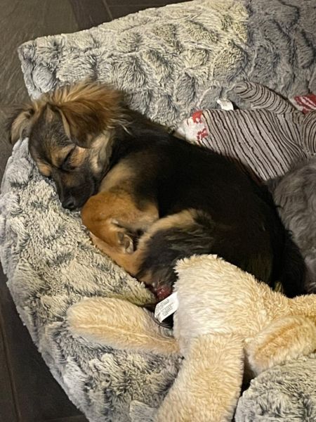 Clarabelle läuft problemlos Treppen, schläft nachts ruhig durch und kuschelt sich nach dem Morgenspaziergang gerne nochmal ins Bettchen.