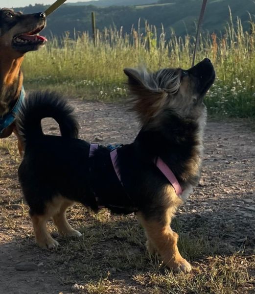 Clarabelle hat sich in ihrer Pflegefamilie sofort gut eingelebt. Sie lebt dort problemlos mit zwei anderen Hündinnen und mit Bobb, mit dem sie in Rumänien aufgewachsen ist, zusammen und zeigt sich im Umgang mit Artgenossen freundlich und verträglich. Sie ist eine sanfte, kleine Hündin, die Konflikten lieber aus dem Weg geht.