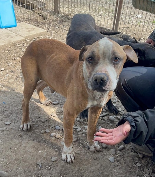 Besonderheit: | Staff-Mix, Vermittlung nur nach AT möglich Narben überall große Narbe zwischen Kopf und Hals an der rechten Seite Liegeschwielen abgemagert an der Wirbelsäule und kräftigen Hängebauch (innerlicher Tumor?) |