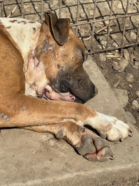 Dieser alte Schatz hat Spuren auf seinem Körper – und in seiner Seele. Viele Narben erzählen von einem Leben, das alles andere als leicht war. Jetzt ist er einfach nur müde. Der Lärm und Stress im Shelter setzen ihm sichtbar zu, er wirkt erschöpft, fast aufgegeben. Und doch zeigt er sich dem Menschen gegenüber offen, freundlich und zutraulich. Jede ruhige Berührung, jede Minute Aufmerksamkeit genießt er. Er legte sich in der Sonne ab und schloss die Augen – als wäre das Licht auf seiner Haut ein kleiner Trost. Für ihn wünschen wir uns ein stilles, liebevolles Zuhause, wo er zur Ruhe kommen darf. Wo man seine Vergangenheit nicht bedauert, sondern ihm einfach nur die Hand reicht – still, geduldig, mit offenem Herzen.