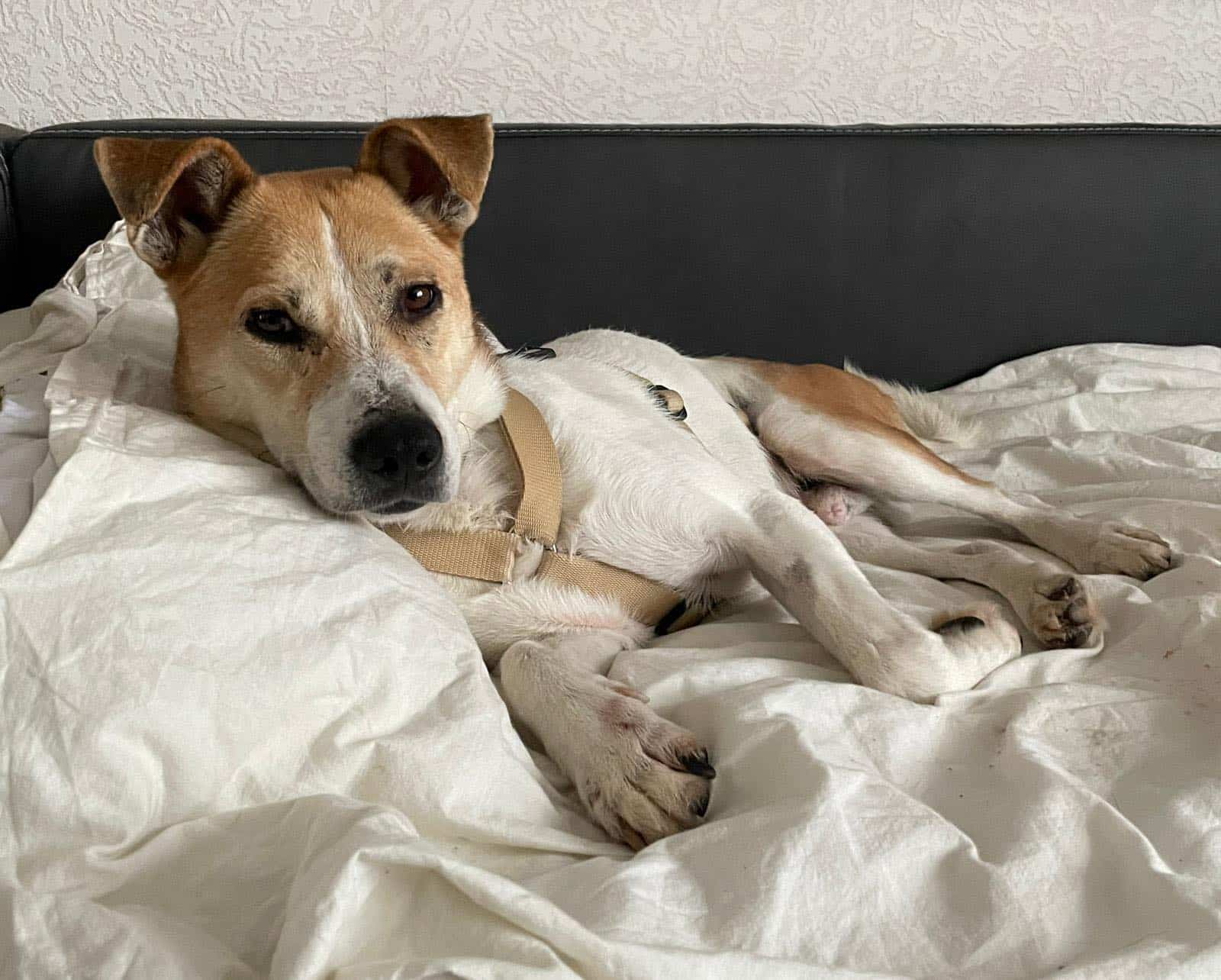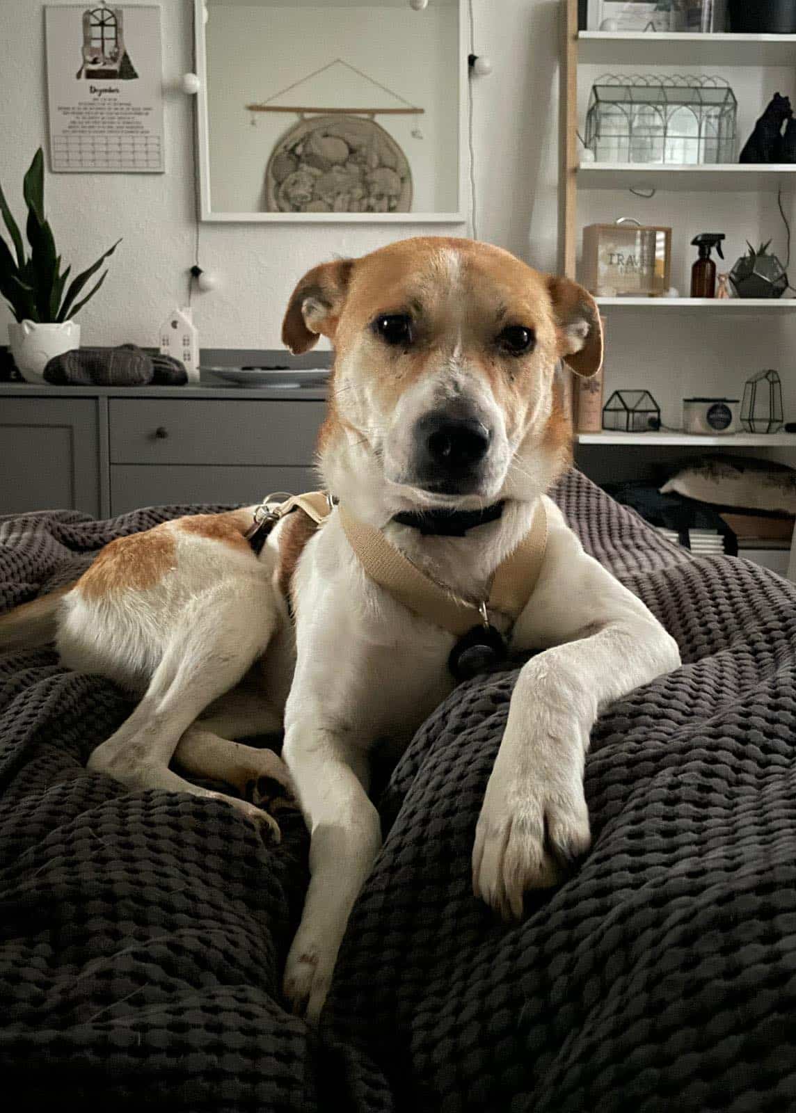 Bei uns darf er auf dem Sofa und Bett liegen und sucht dort auch von sich aus den Kontakt zu uns zum Spielen und Schmusen. Mit den drei vorhandenen Hunden kommt er super zurecht, beherrscht Hundekommunikation und zeigt sich mittlerweile auch sehr verspielt.